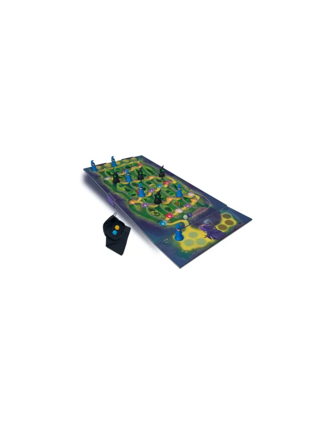 De méchantes sorcières ont décidé de dérober le cristal magique du grand enchanteur. En tant qu’apprentis, vous devez les en empêcher et rejoindre le bas de la colline avant elles. Suivez les feux follets à travers les chemins sinueux de la forêt. Faites descendre les billes en déplaçant chaque figurine qu’elles touchent vers le point de couleur suivant jusqu’à ce que la bille arrive tout en bas. Puis on pioche une autre bille et on recommence. Si les apprentis arrivent près de l’enchanteur avant les sorcières, c’est gagné!