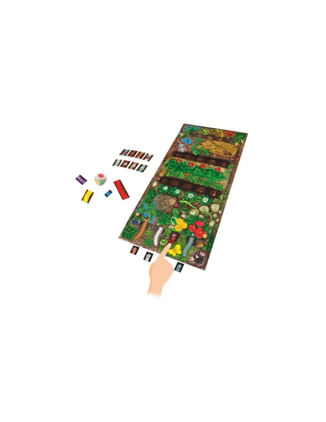 Le jeu contient un grand plateau de jeu, un petit plateau de jeu, 4 fixations, 60 morceaux de vers de terre, 4 têtes de vers, 4 pâquerettes, 4 fraises, 1 dé couleur et une règle du jeu.