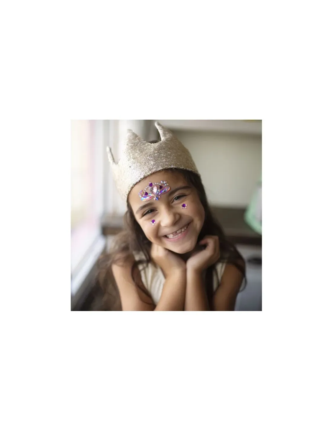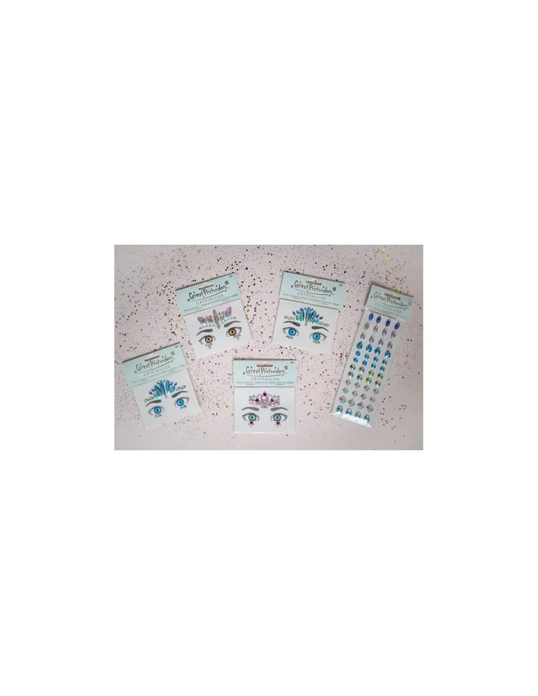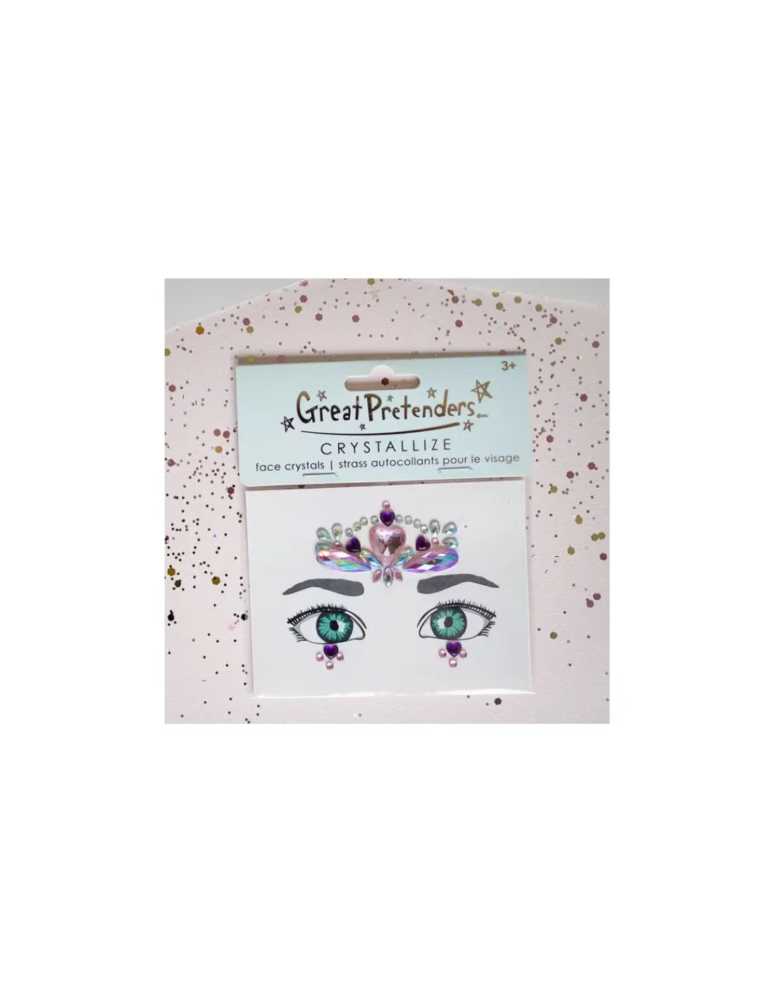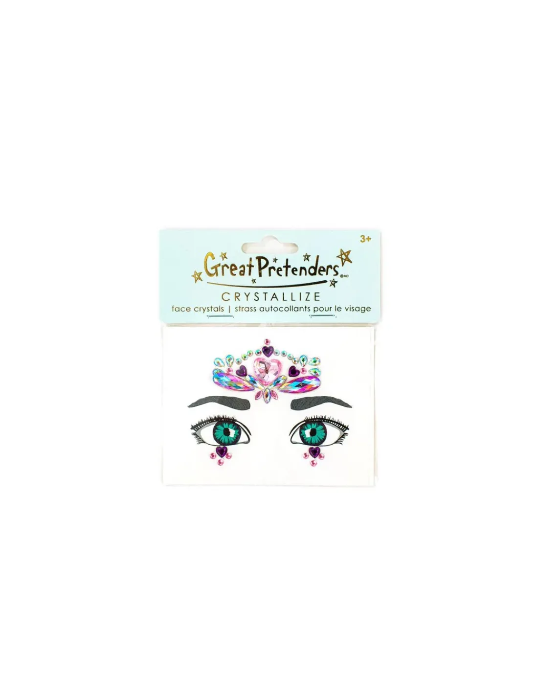 Découvrez les Cristaux autocollants coeur pour le visage de Great Pretenders, une planche de stickers de peau en formes de cristaux à placer sur votre visage à partir de 3 ans.