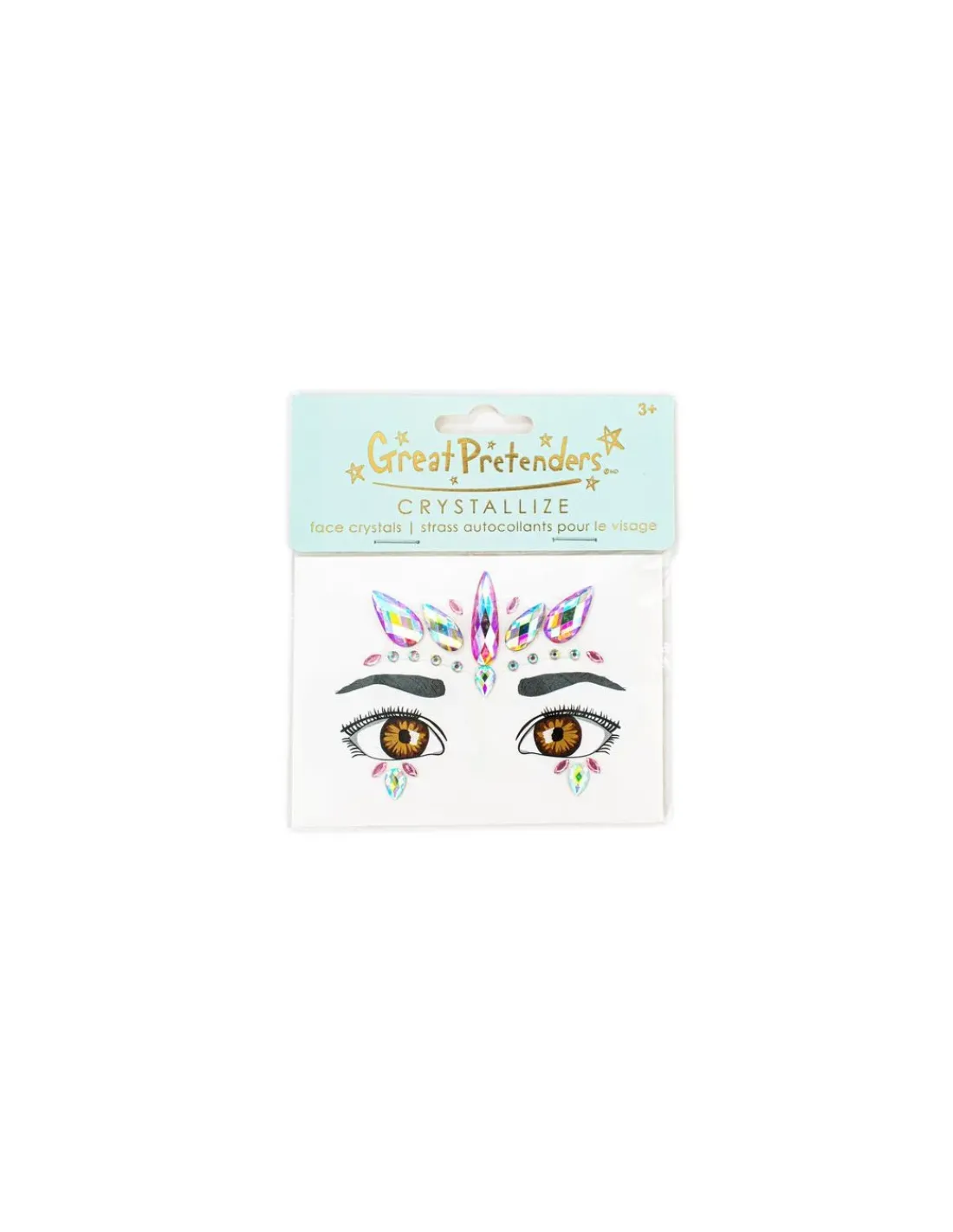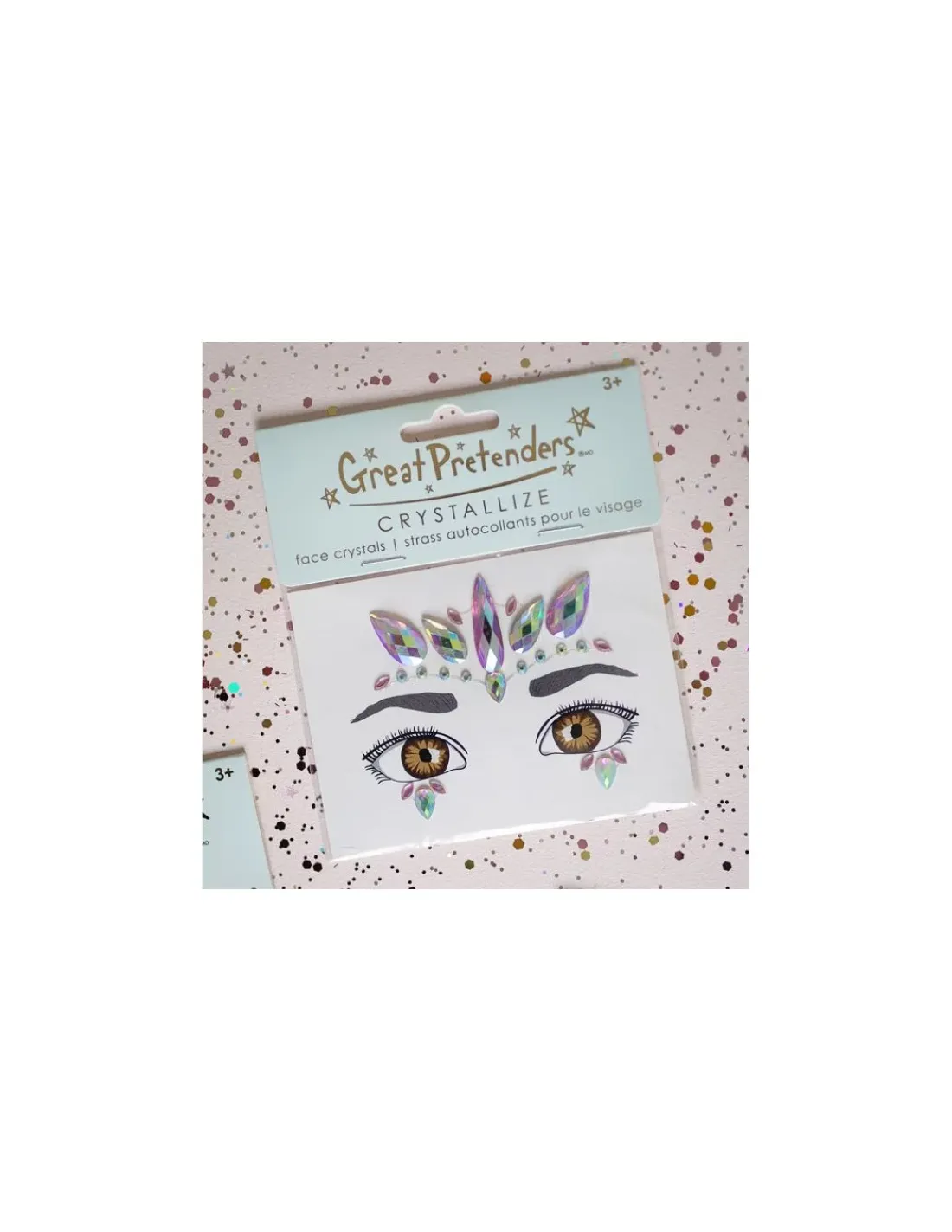 Découvrez les Cristaux autocollants licorne pour le visage de Great Pretenders, une planche de stickers de peau en formes de cristaux à placer sur votre visage à partir de 3 ans.
