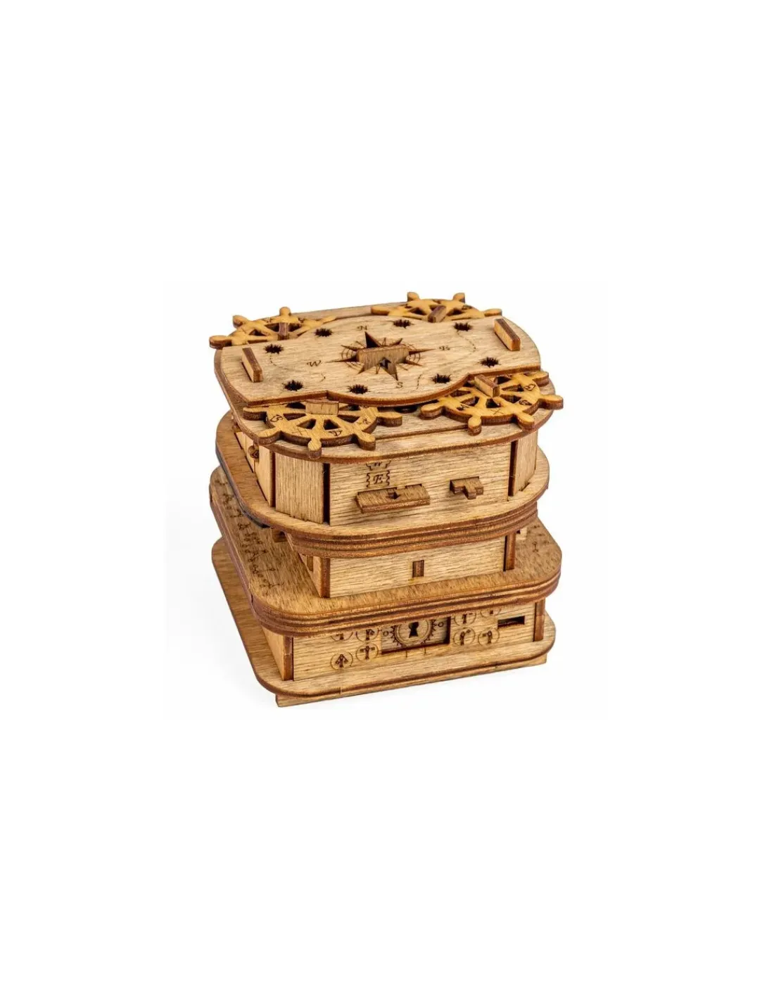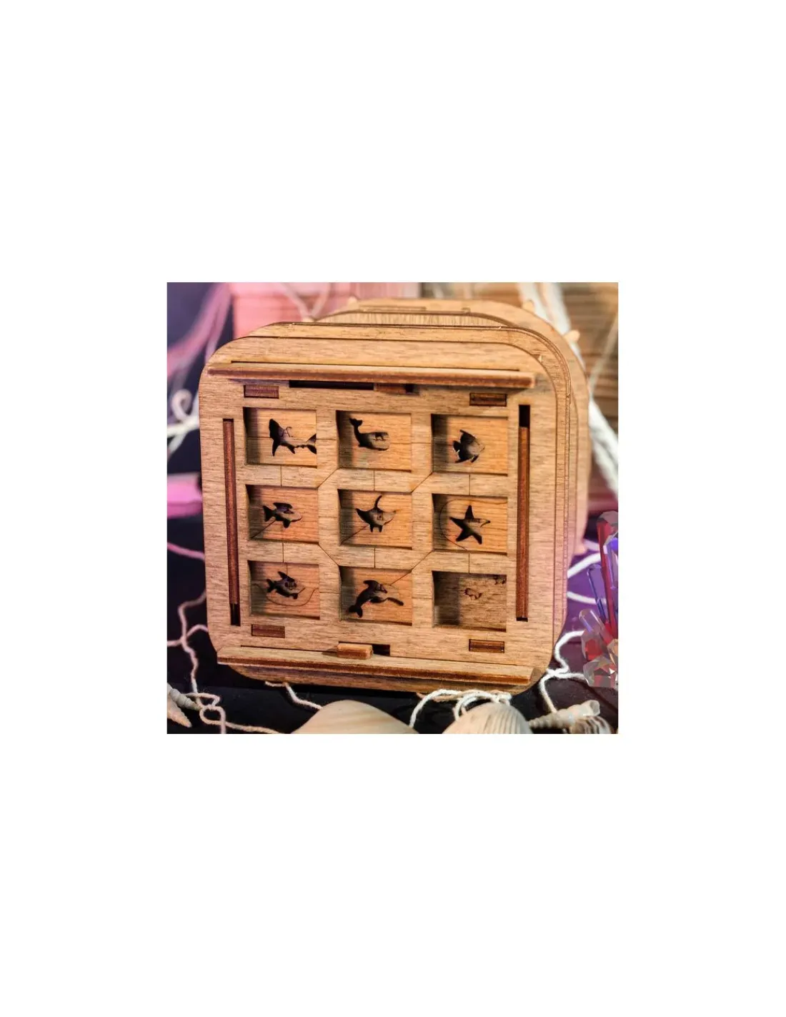 Découvrez le casse-tête 3D Cluebox Le casier de Davy Jones, une boîte à énigmes interactive avec diverses énigmes et tâches qui doivent être résolues les unes après les autres pour ouvrir la boîte. Une escape room au format pratique tout en bois à partir de 14 ans. Votre propre petite salle d’évasion à la maison, une boite à indices que vous allez tenter d’ouvrir puis que vous pourrez remonter.