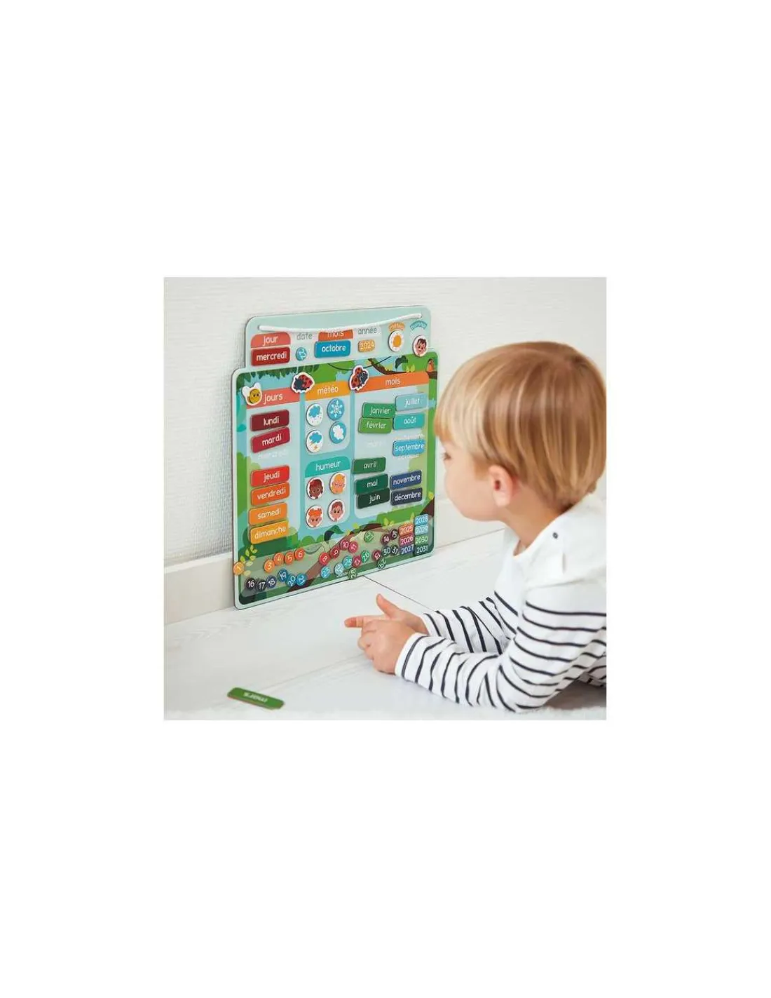 Découvrez le calendrier magnétique de Janod, un agenda magnétique 3 en 1 qui permet aux enfants dès 3 ans d’apprendre à identifier la date, à donner la météo et à exprimer son humeur du jour.