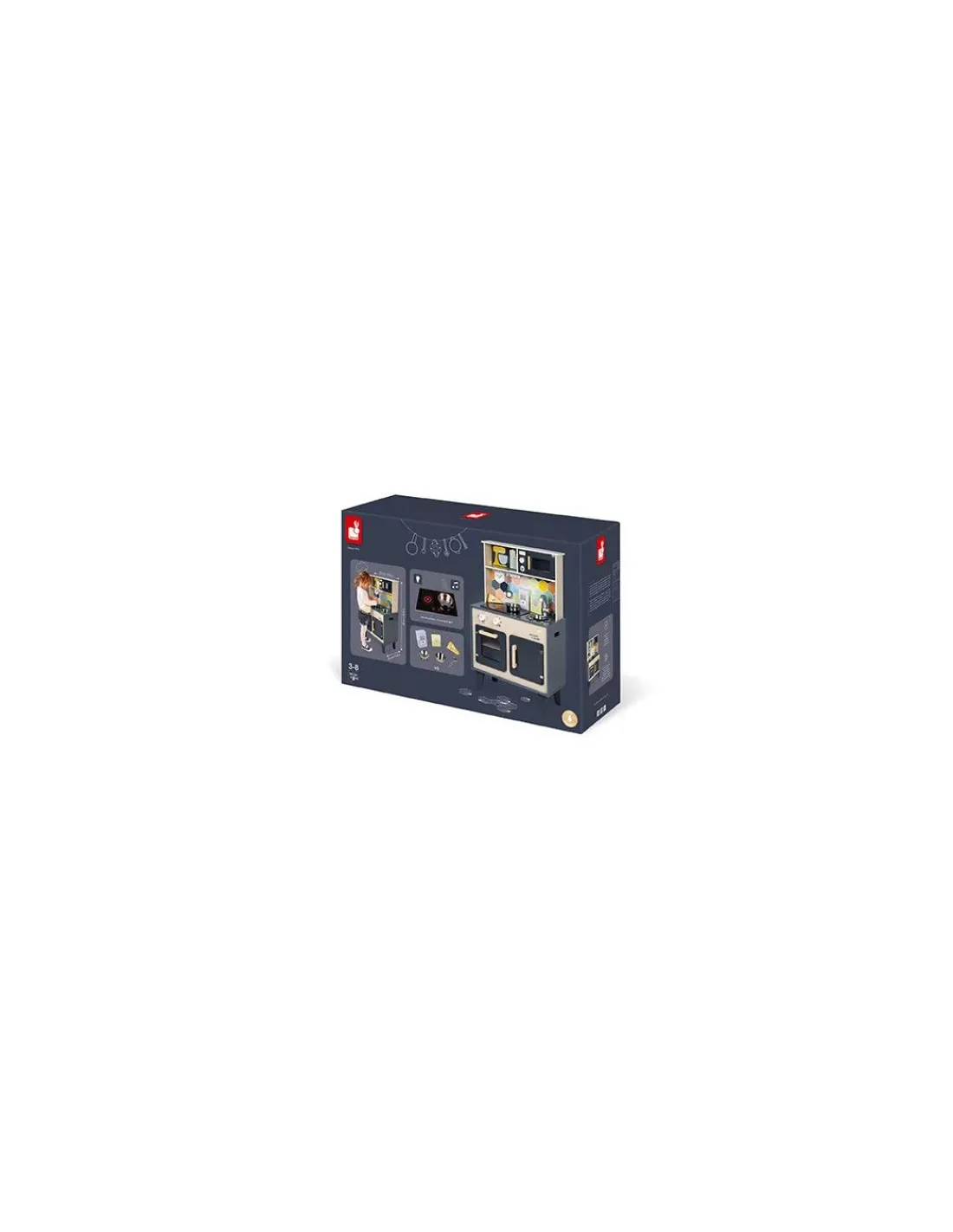 Découvrez la cuisine Mozaïc de Janod, une cuisine en bois pour préparer de bons petits plats. Cette cuisine en bois naturel aux couleurs mixtes et à la crédence ornée d’hexagones, comprend également des accessoires pour cuisinier, ainsi que du son et de la lumière.