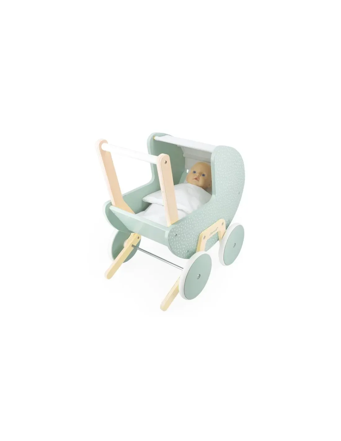 Découvrez le landau Zen de Janod, une magnifique réplique d’un landau de bébé, un jouet en bois qui servira de chariot de marche lors des premiers pas de votre enfant, puis de landau pour emmener en promenade toutes ses poupées. Un cadeau pour les enfants de 18 mois à 3 ans.