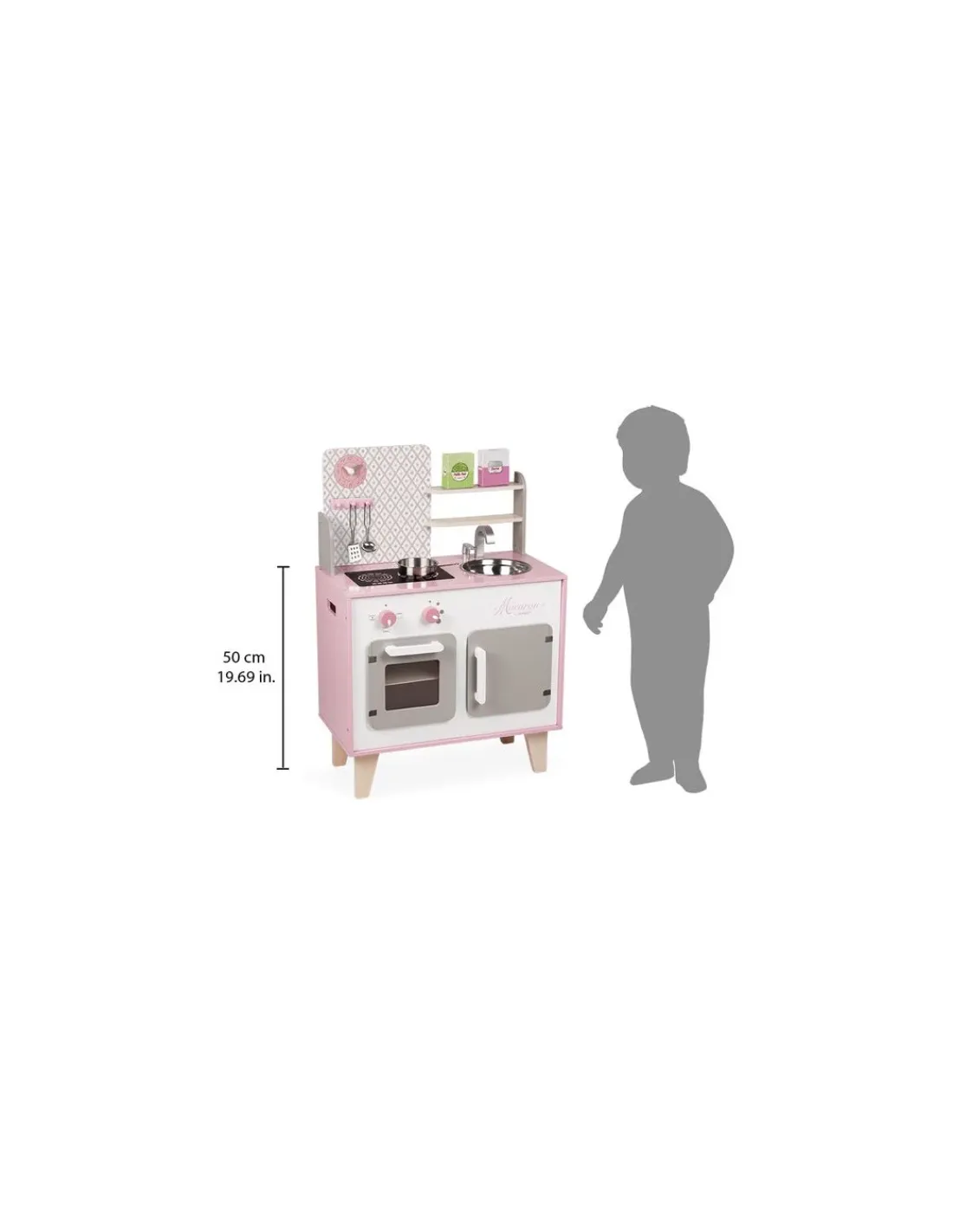Découvrez la maxi cuisine Macaron de Janod, une cuisine toute en bois pour préparer de bons petits plats et devenir un vrai chef. Cette cuisine équipée comprend 5 accessoires pour cuisinier (une poêle, 2 cuillères et 2 boites d’aliments en carton) ainsi que du son et de la lumière.