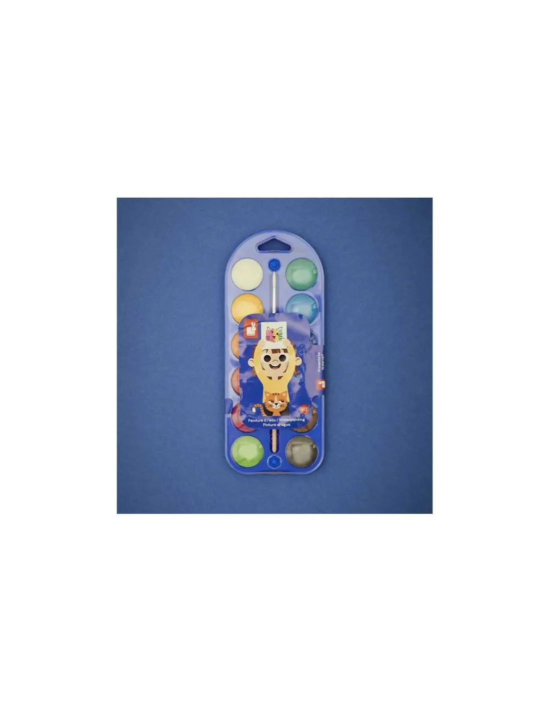 Découvrez la peinture à l’eau de Janod, une palette de 12 pastilles de peinture à l’eau et un pinceau parfait pour développer la créativité des enfants dès 3 ans.