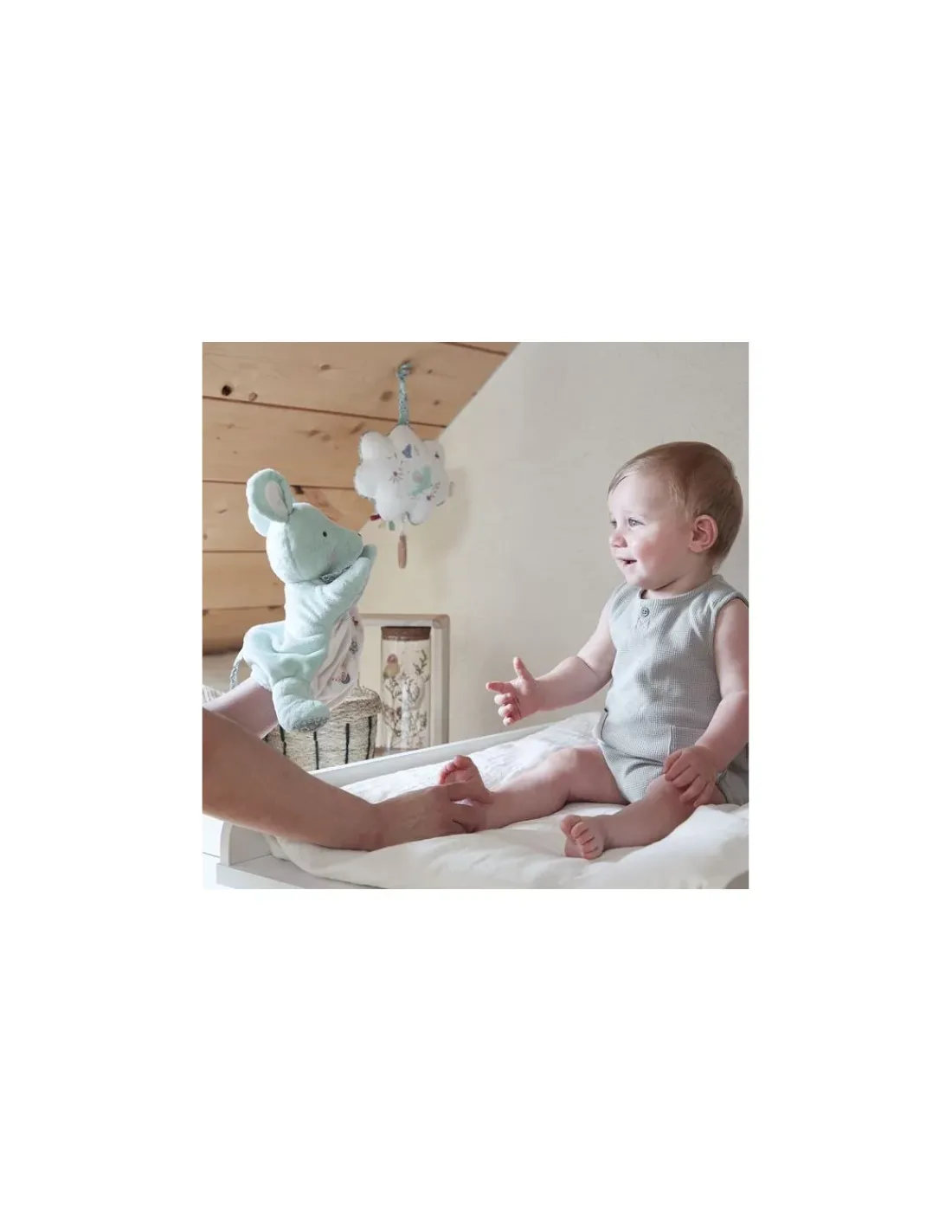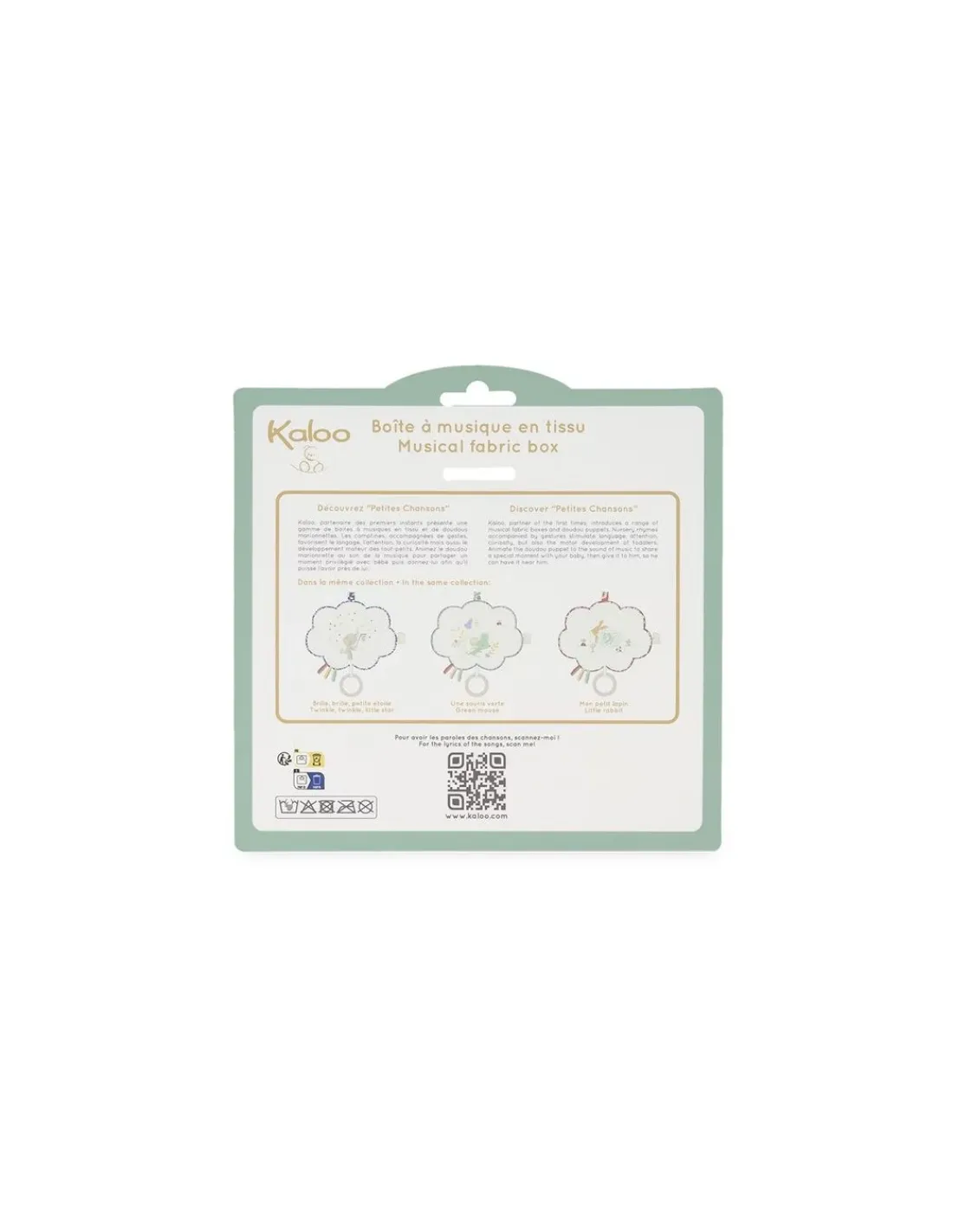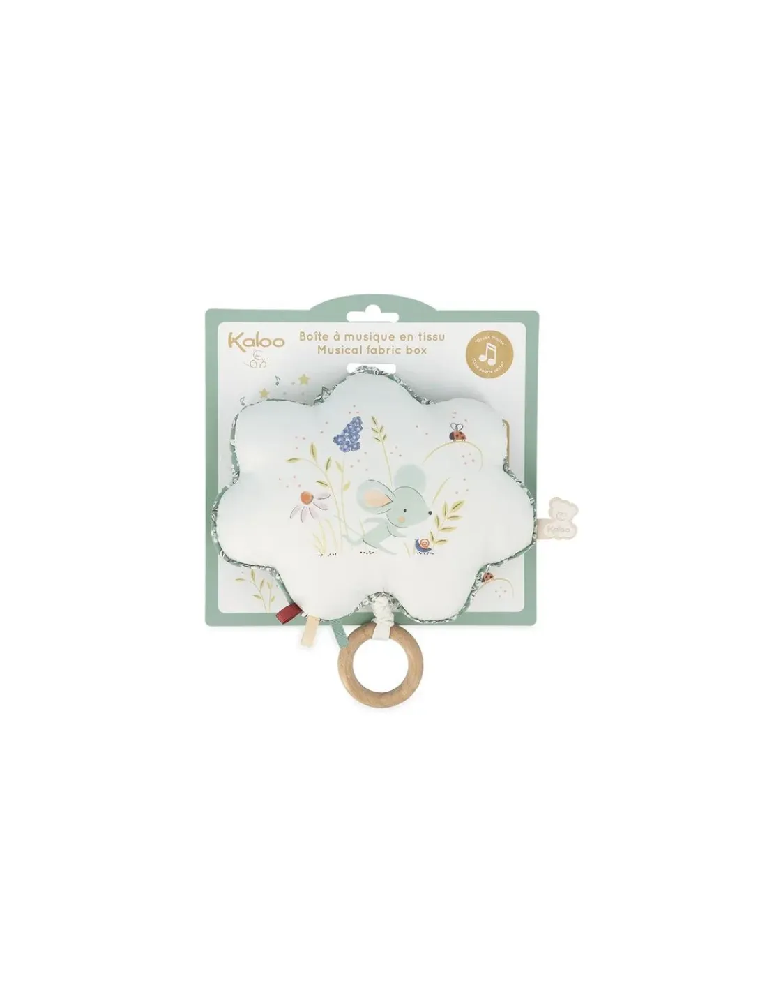 Découvrez la boite à musique Une souris verte de la collection Petites chansons de Kaloo, une magnifique peluche musicale en forme de nuage à accrocher au parc ou au lit pour apaiser bébé. Un cadeau de naissance plein de douceur qui bercera votre enfant dès sa naissance.