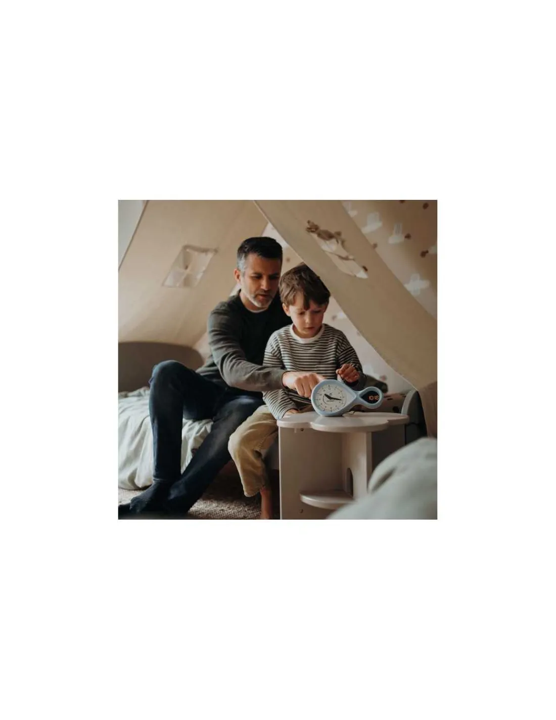 Un réveil tendance avec un cadran à aiguilles phosphorescent et un affichage électronique lumineux, qui permet à l’enfant de lire l’heure dans l’obscurité. Il possède une alarme avec deux réglages possibles et n’émet pas d’ondes pendant le sommeil de votre enfant.