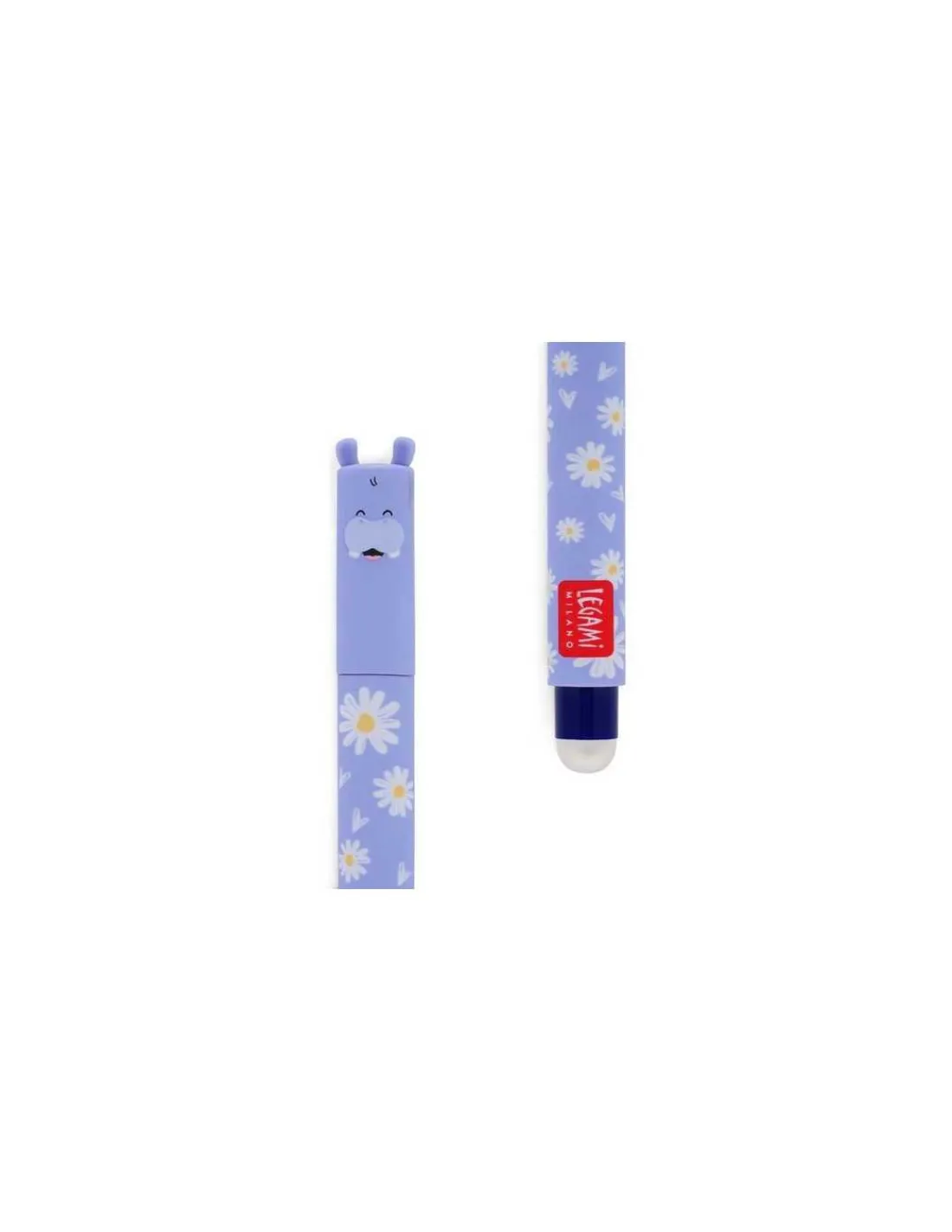 Découvrez le stylo à encre gel effaçable Hippo de Legami, un crayon à encre bleue aussi pratique qu’élégant, qui transforme l’écriture en un véritable moment de plaisir. Un stylo violet avec motifs fleurs et un bouchon en forme de tête d’hippopotame qui va vous faire craquer!