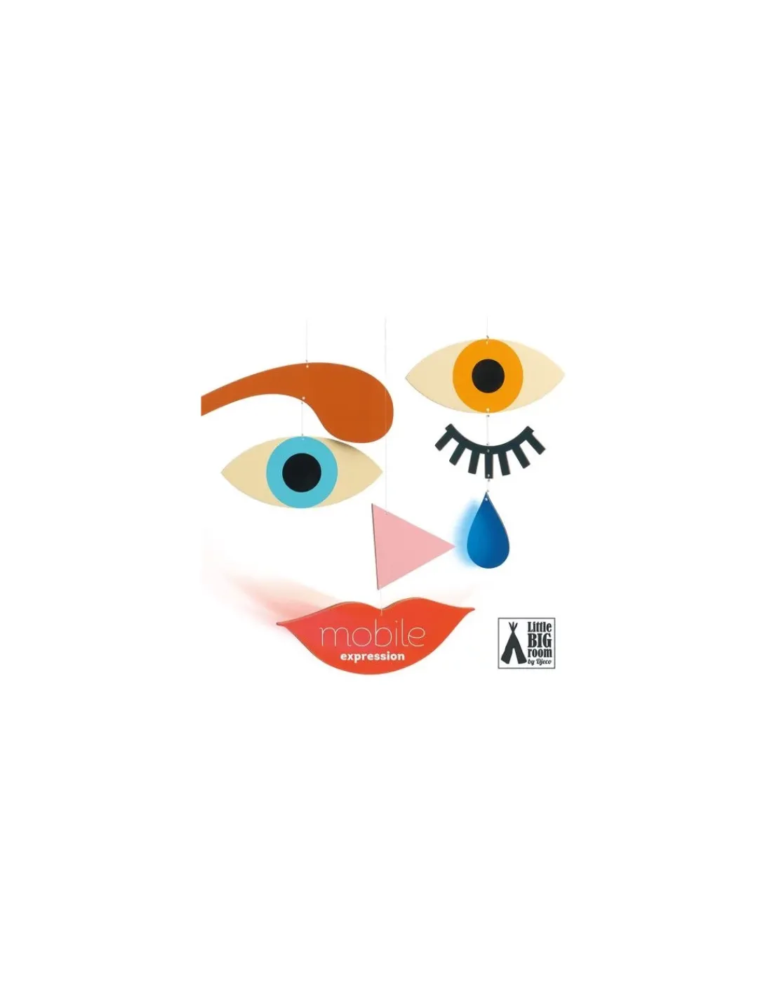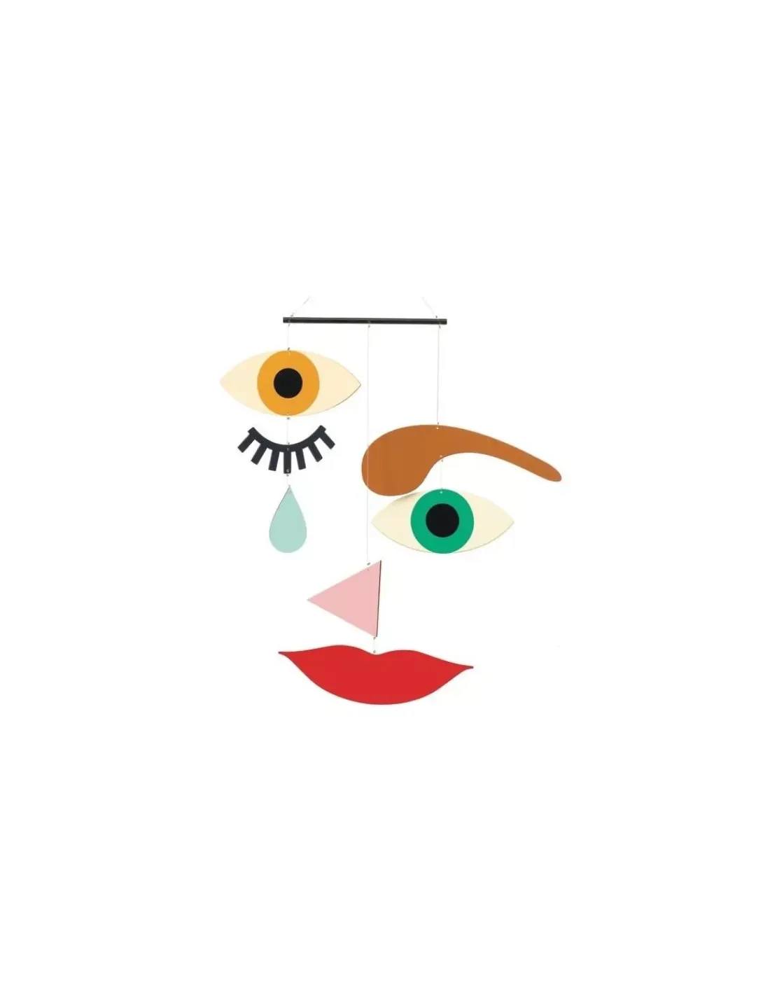 Ce mobile expression représente les éléments d’un visage avec des yeux, cils, sourcils, larme, nez et bouche. Un mobile graphique et contemporain pour décorer les pièces de la maison.
