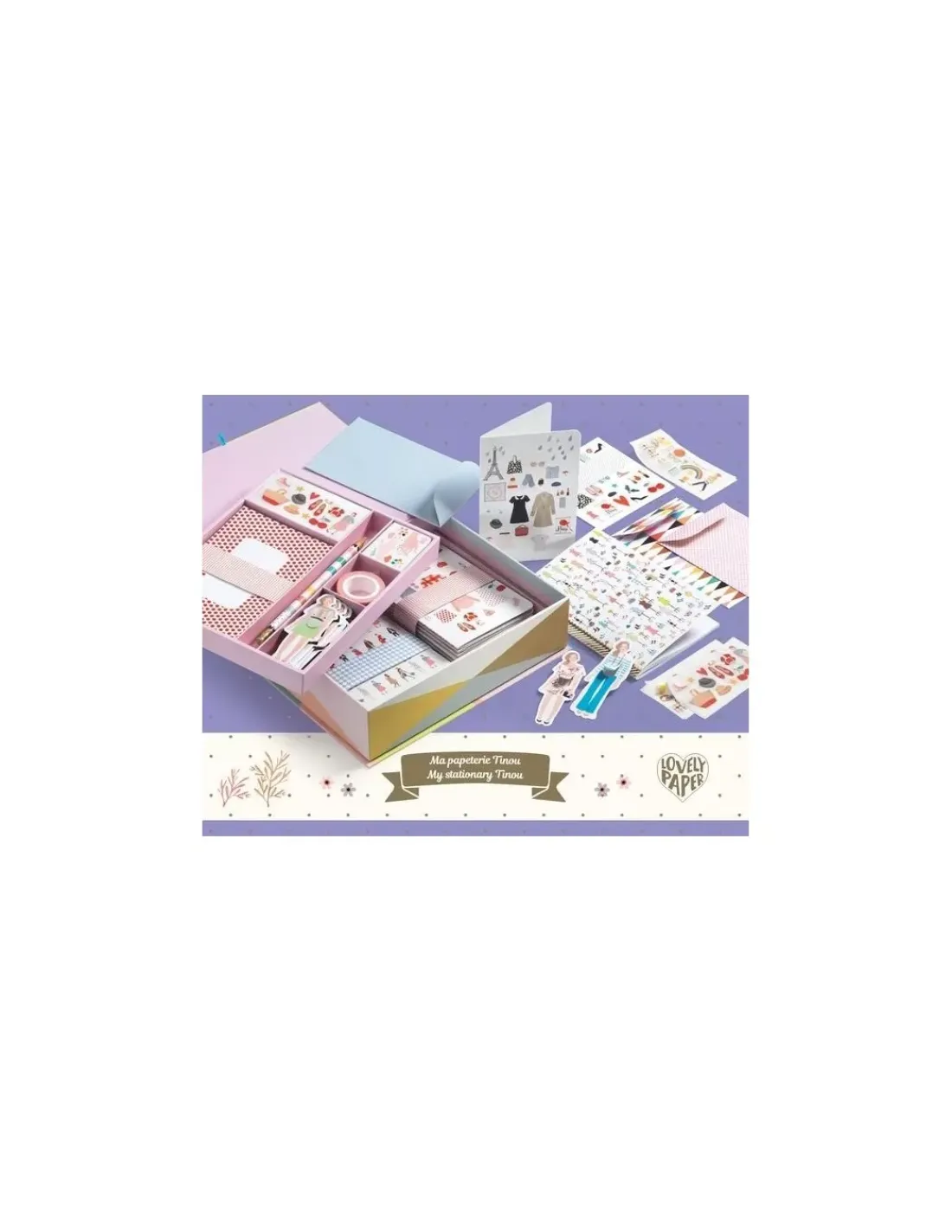 Découvrez le coffret de papeterie Tinou de Lovely Paper by Djeco, un coffret cadeau remplie de papeterie pour écrire, dessiner ou créer à partir de 6 ans.