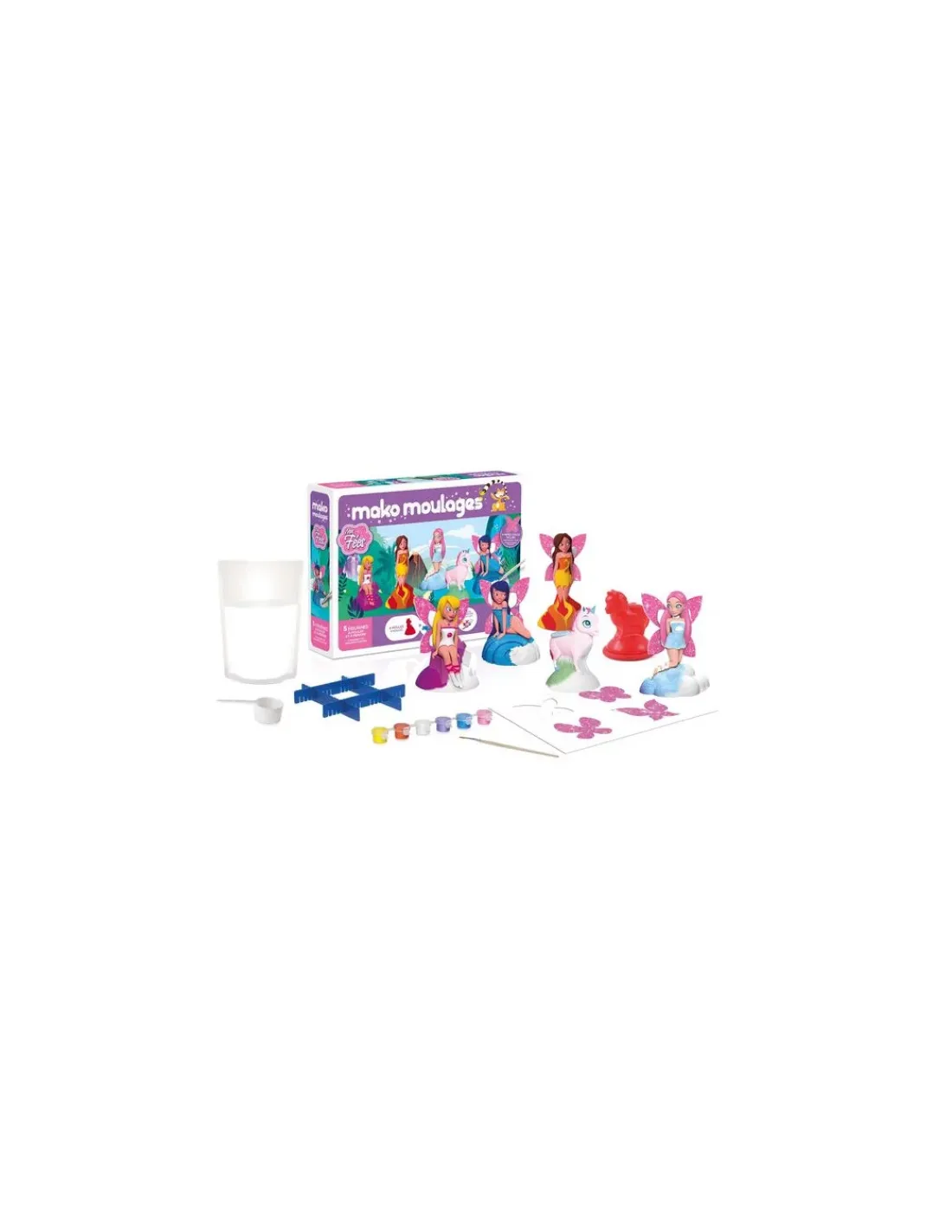 Découvrez le coffret mes fées Mako moulages, 5 figurines féeriques en plâtre à mouler et à décorer pour les enfants à partir de 6 ans. Un coffret fabriqué en France, une activité créative autour du moulage et de la peinture, un cadeau parfait pour les jeunes filles créatives. Il était une fois, dans les contrées lointaines du monde de Mako moulages, 4 merveilleuses fées puisant leur pouvoir au coeur des 4 éléments de la nature: Jade la fée de la Terre, Alba la fée de l’air, Lyz la fée du feu, Marina la fée de l’eau et Mipou la licorne magique.
