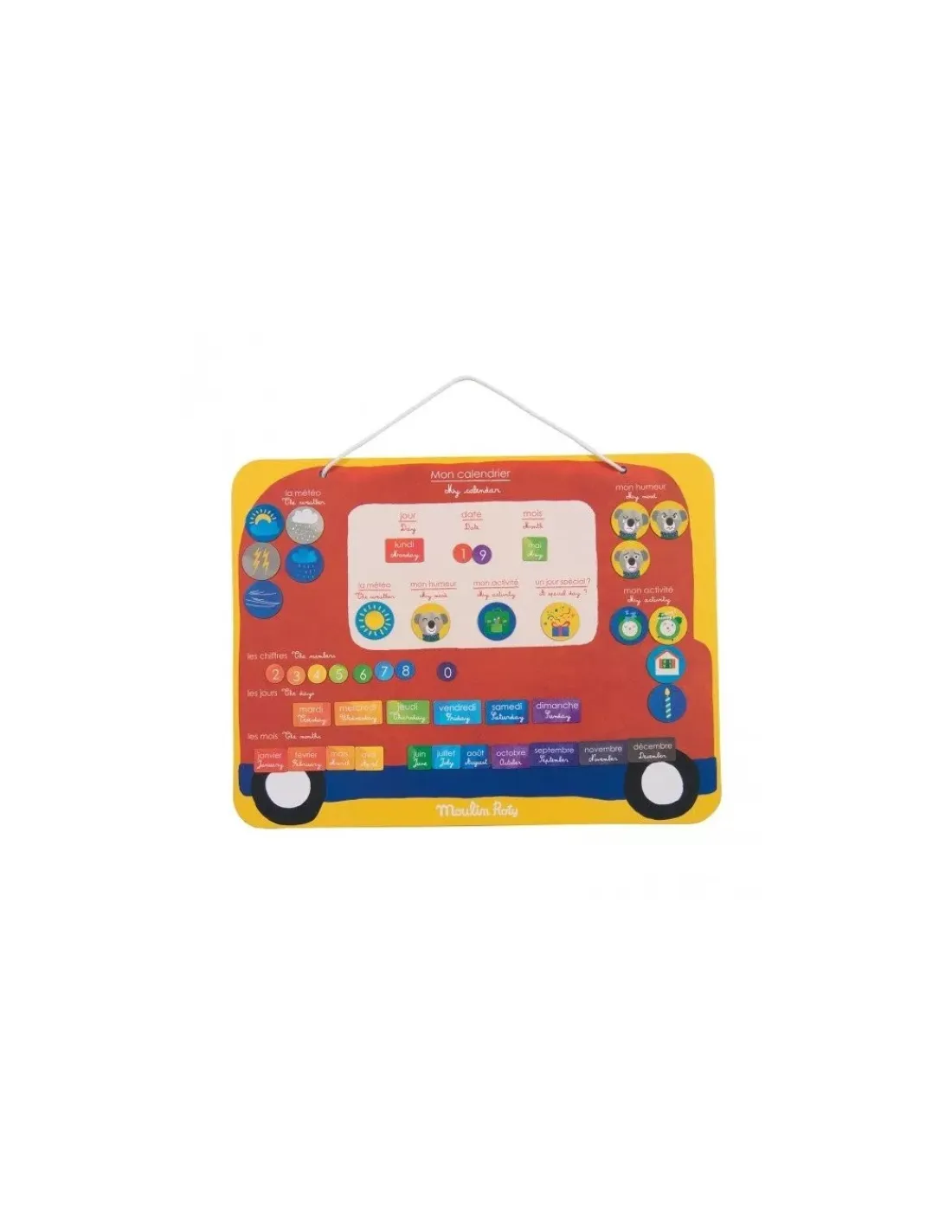 Découvrez le calendrier magnétique de la collection Les Popipop de Moulin Roty, un calendrier très coloré avec le bus des popipop. 45 magnets pour un semainier très complet regroupant la météo, l’humeur, les activités et les anniversaires. Au programme ce jeudi, c’est goûter chez Nina, il fait beau et je suis content.