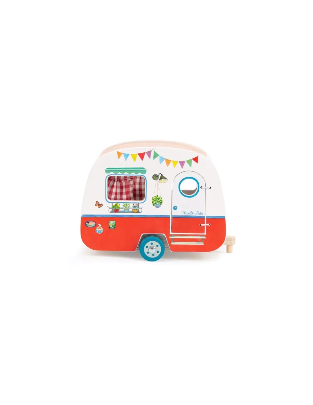Découvrez la caravane de la collection La Grande Famille de Moulin Roty, un jouet en bois permettant aux enfants, dès 3 ans, d’inventer de belles histoires sur le thème des vacances.