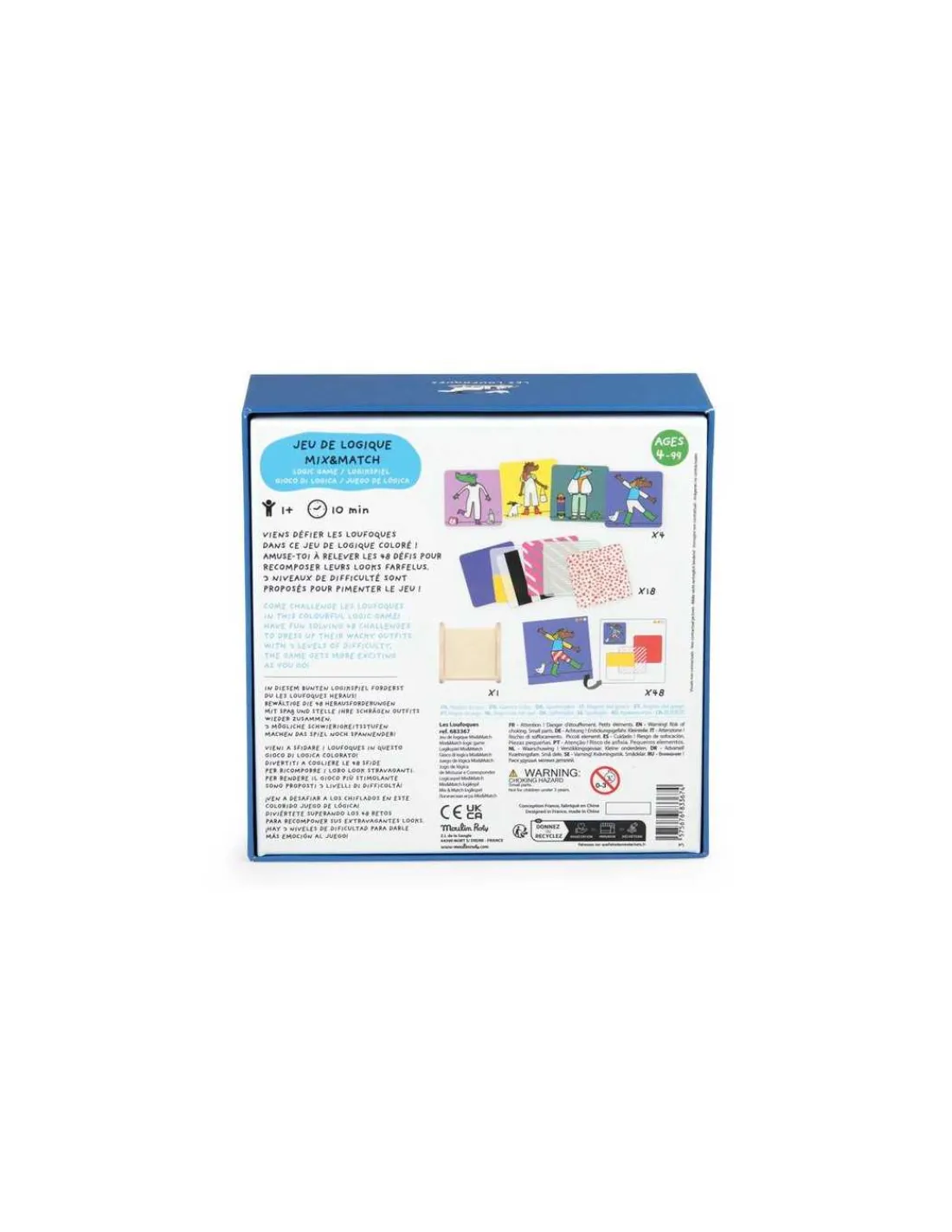 Découvrez le Jeu de logique Mix and Match de la collection Les Loufoques de Moulin Roty, un jeu de défis pour jouer en famille à partir de 4 ans. Un jeu fabriqué en France.