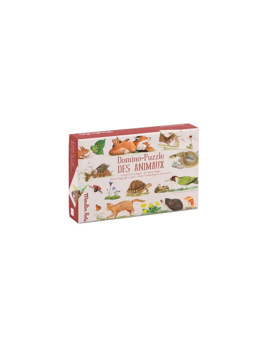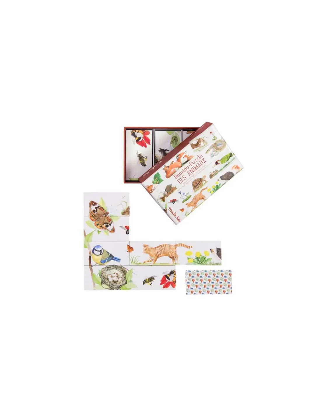 Découvrez le jeu domino puzzle des animaux de la collection Le jardin du moulin de Moulin Roty, un jeu éducatif à partir de 3 ans aux jolies illustrations d’animaux.