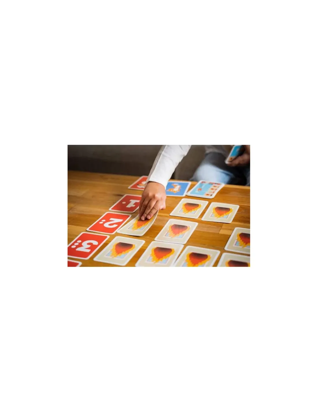 Retournez chacun une carte, celui qui a la carte la plus forte aura le droit de retourner une carte feu. Mais attention de ne pas tomber sur le cantinier ou la cantinière.