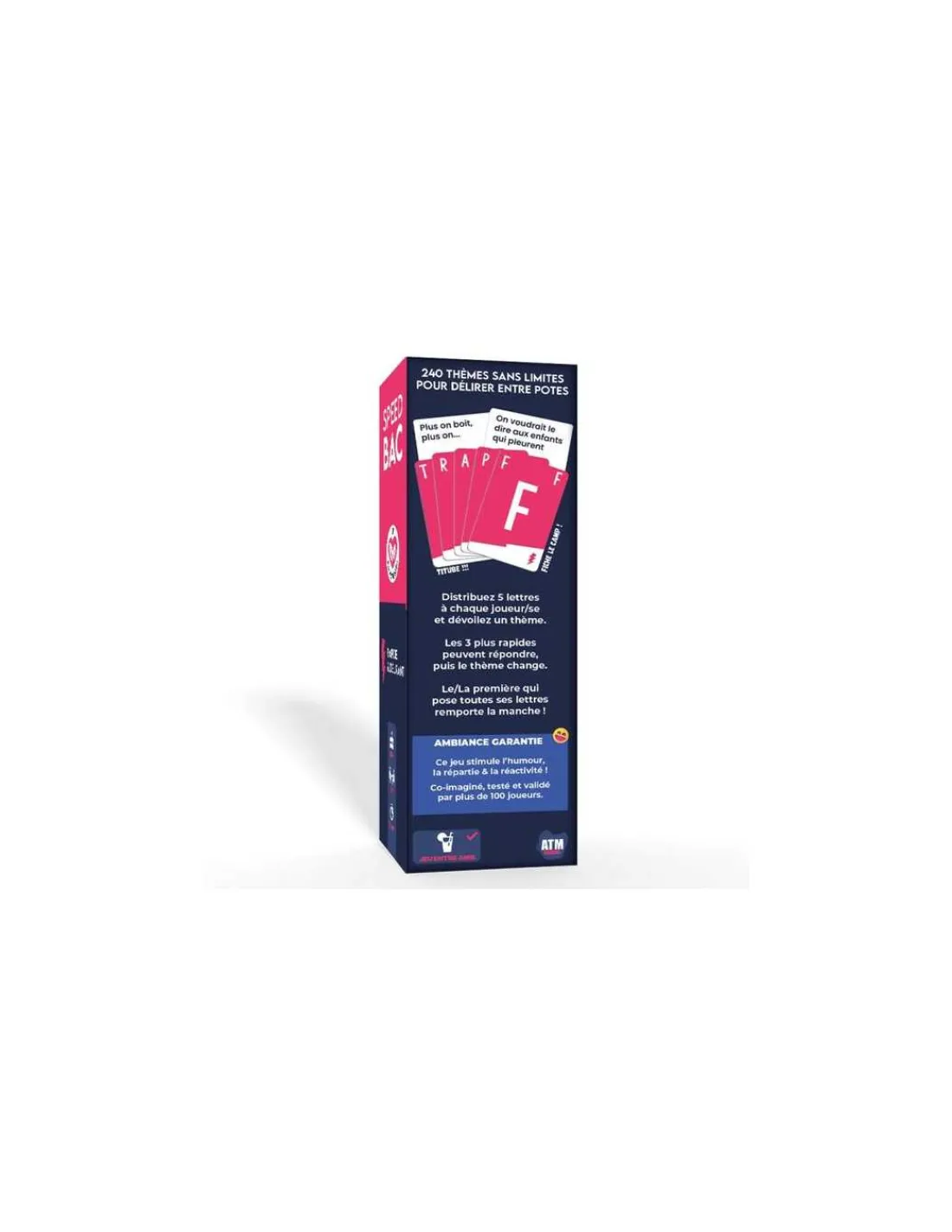 Découvrez le jeu Speedbac rouge de ATM Gaming, un jeu de cartes convivial qui stimule la répartie et l’humour, idéal pour jouer entre amis à partir de 16 ans. Un jeu de rapidité qui revisite le célèbre jeu : le Petit Bac.