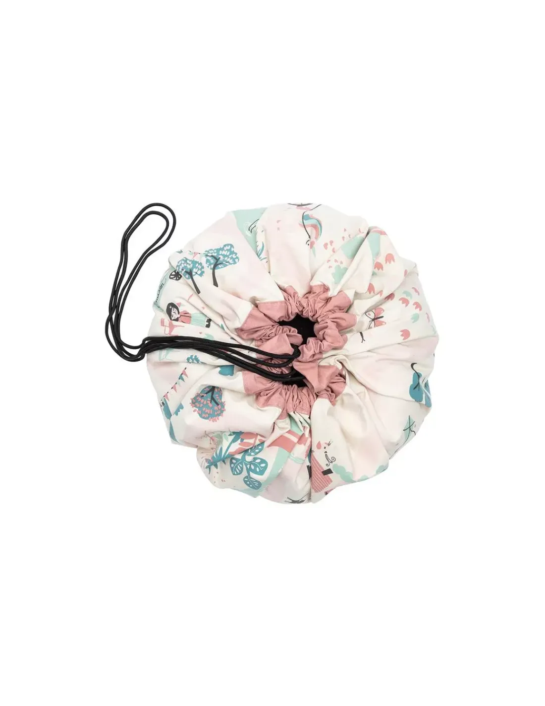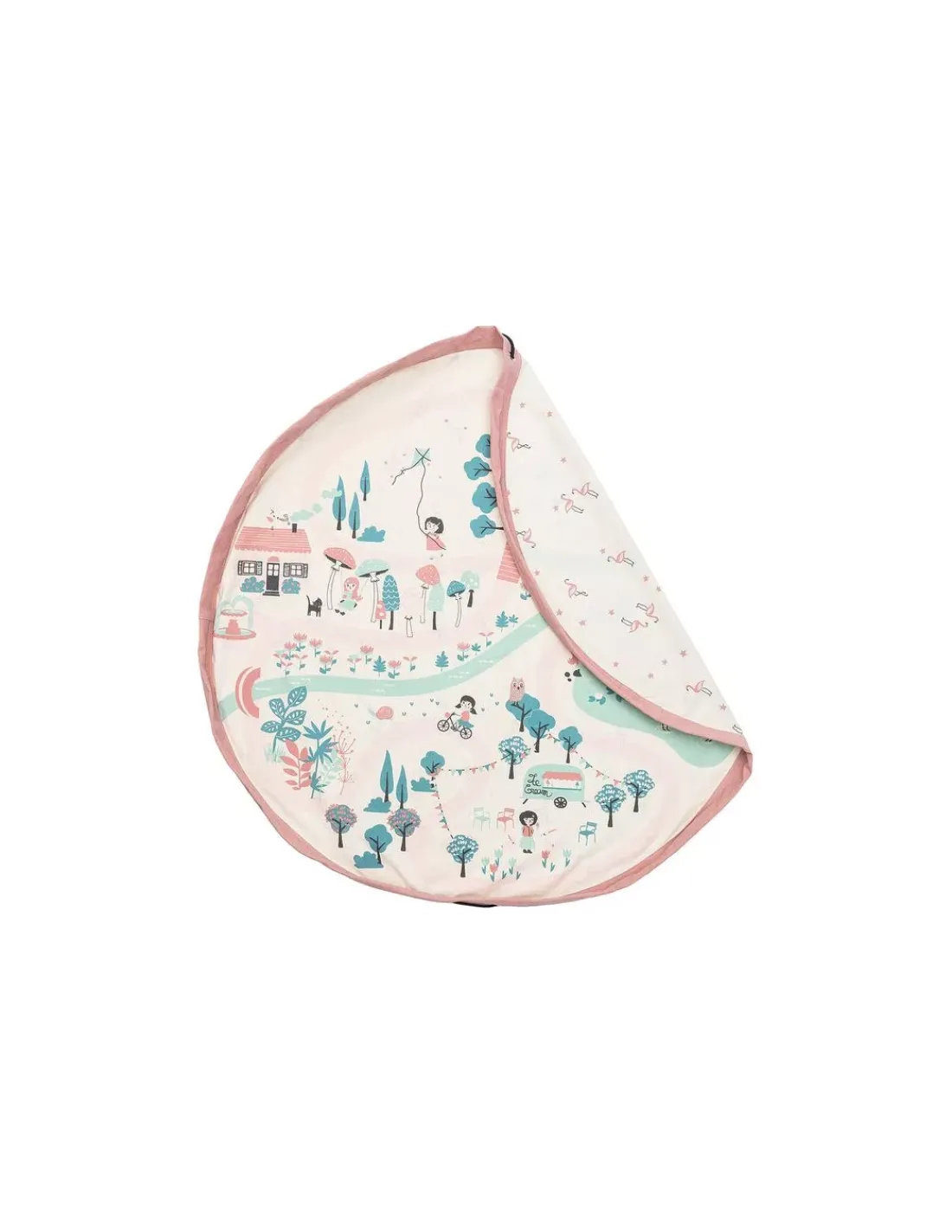 Ouvrez le sac et étalez le sur le sol, sur la plage ou dans le jardin et jouez sur ce tapis comme sur un tapis de jeu illustré avec un parc! Puis quand vous aurez fini, serrez les liens pour tout transporter sans rien faire tomber. Un sac astucieux pour ranger en un clin d’oeil tous les jouets de votre enfant, un sac que vous emporterez en week-end, en vacances, chez mamie…