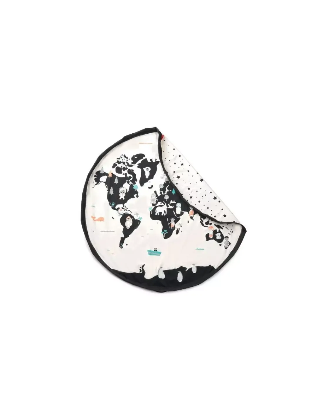 Découvrez le grand sac à jouets worldmap de Play&Go, grand tapis de jeu et un sac de rangement pratique pour les jouets de votre enfant. Solide, pratique et coloré pour l’emporter partout avec vous. Un sac en toile réversible avec une carte du monde d’un côté et des étoiles de l’autre, un sac pour transporter ses jouets, ses peluches, ses affaires de plage…