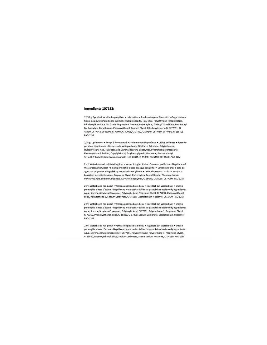 Les ingrédients sont végétaliens. Les ingrédients du fard à paupières, du fard à joues et du brillant à lèvres sont testés dermatologiquement.