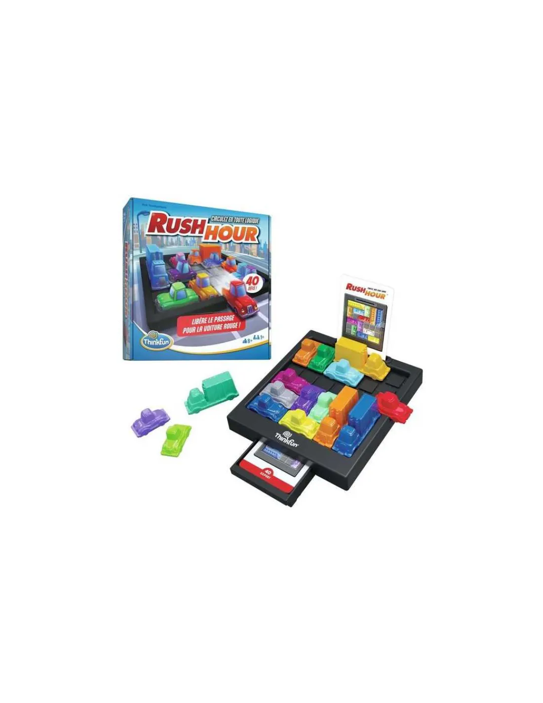 Découvrez le célèbre jeu Rush Hour le jeu des embouteillages, un jeu de logique à partir de 8 ans avec 40 défis évolutifs où vous devrez faire glisser la voiture rouge pour la sortir des embouteillages.