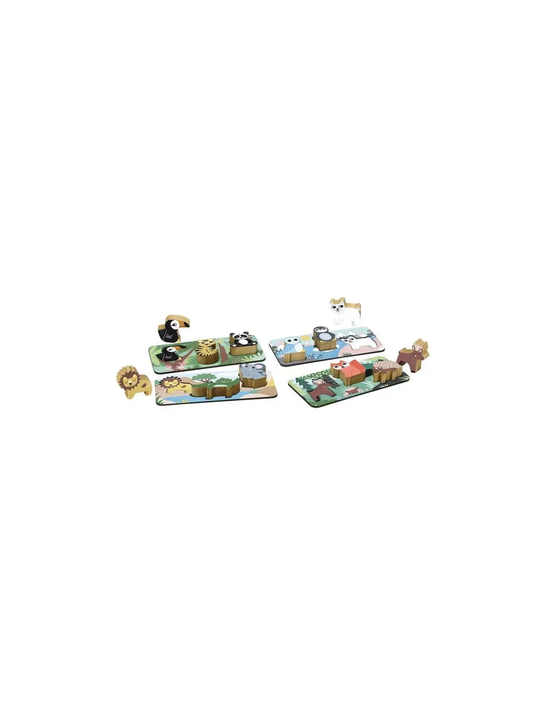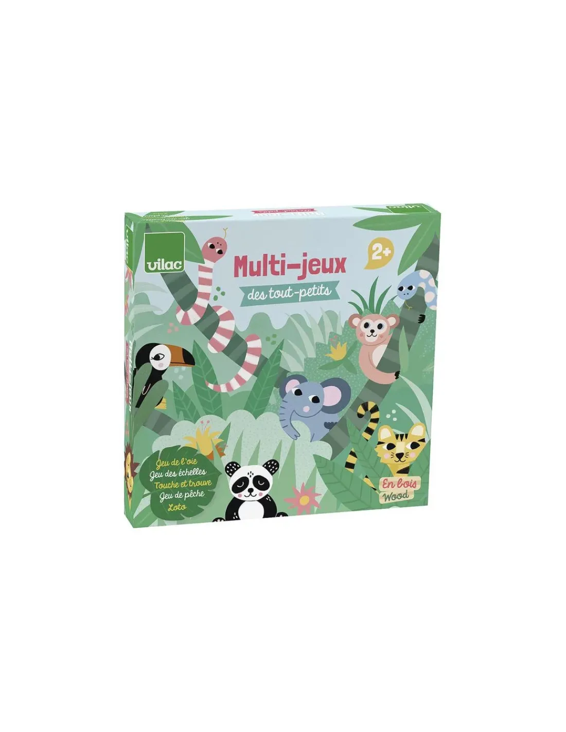 Saisissez-vous des cannes à pêche magnétiques pour attraper un toucan, un tigre, un panda et tous leurs amis, soyez le plus habile ! Finie la pêche ? Passez alors à un jeu de loto, chaque animal s’encastrera à sa place dans la forêt, la savane, la jungle ou la banquise. Jeu emblématique chez Vilac, vous pourrez aussi jouer au touche et trouve : il faut essayer de reconnaitre les formes dans le sac en tissu juste au toucher ! Un hérisson ? Un éléphant ? Mais non c’était le renard.