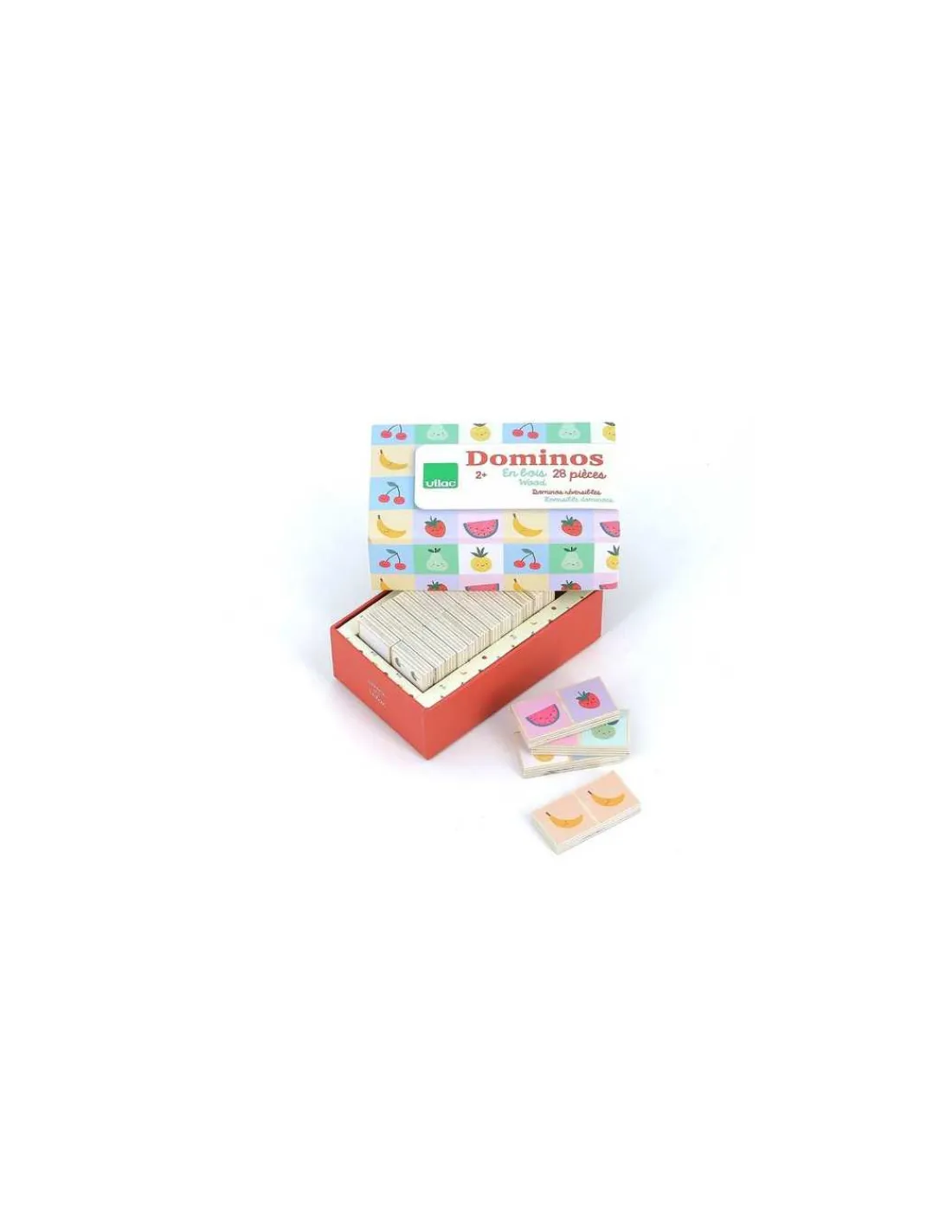 Un éducatif en bois pour les enfants à partir de 2 ans qui contient 28 dominos réversibles en bois et 1 joli coffret de rangement.