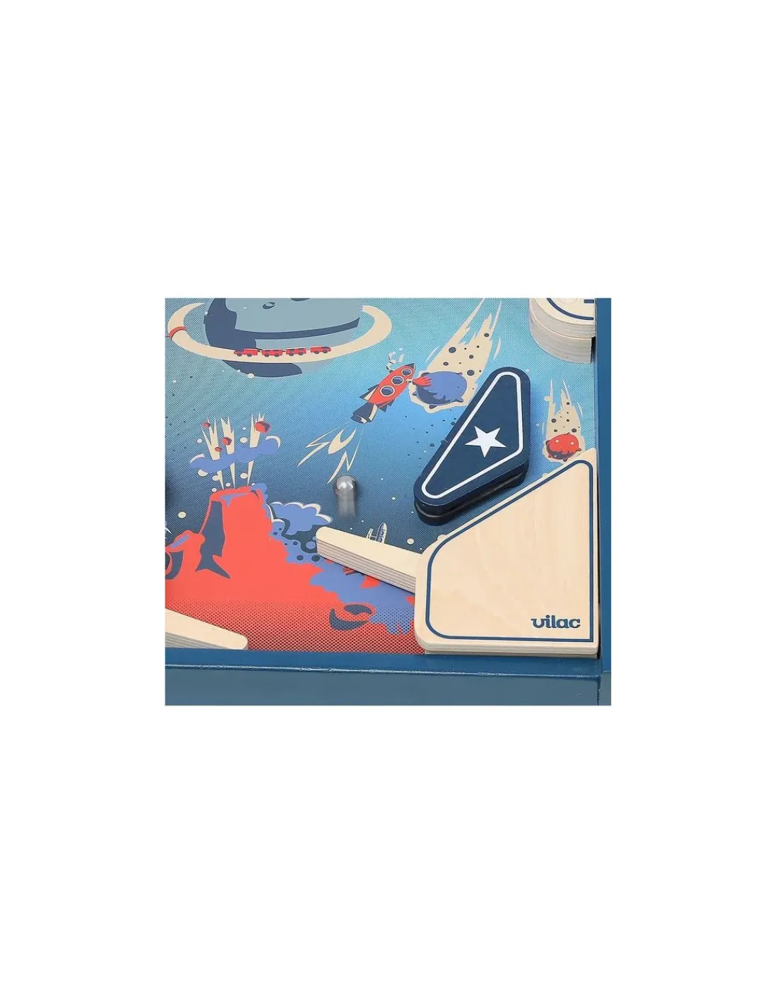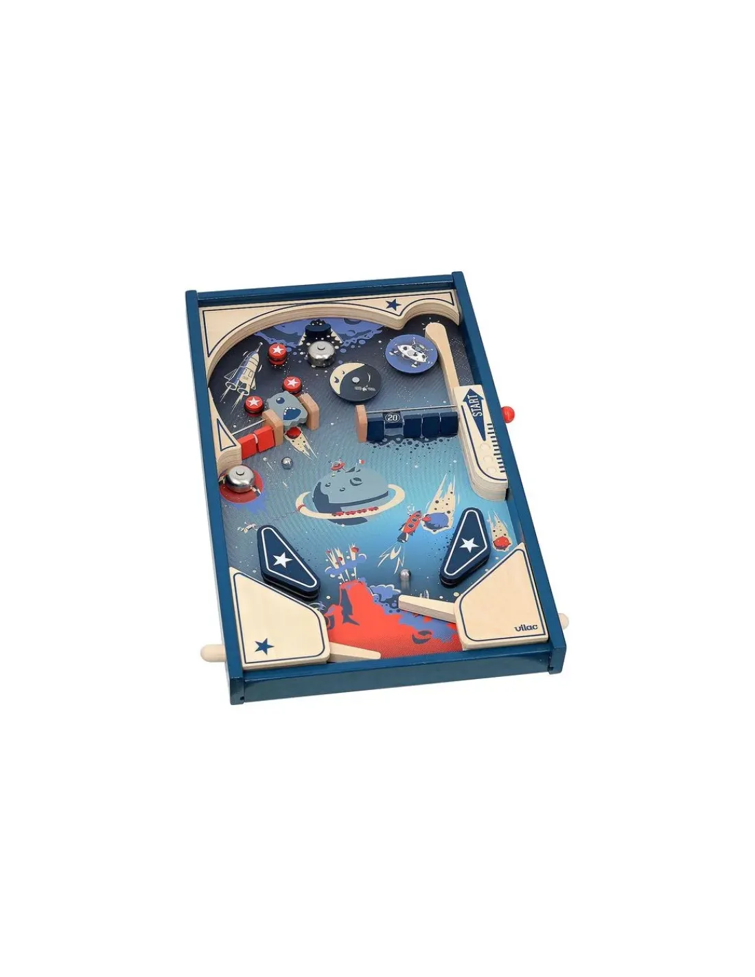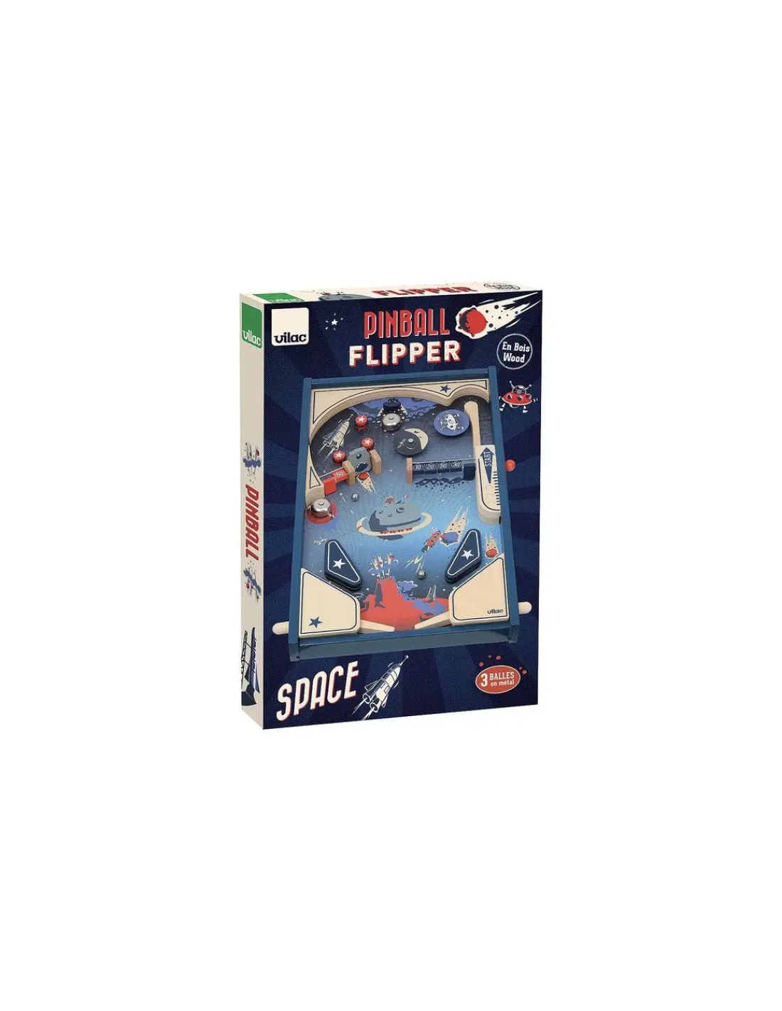 Embarquement immédiat pour un voyage intergalactique à bord du vaisseau Vilac dans ce magnifique flipper en bois au look vintage. Dégommez les cibles et faites tourner la tête des martiens au milieu des planètes! Un flipper de table en bois pour des heures de jeu pleines d’ambiance. Et cerise sur le gâteau, ce flipper fonctionne sans piles, tout est mécanique.