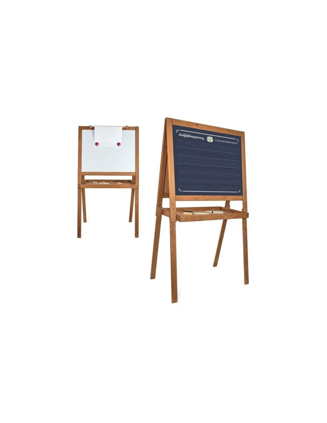 Découvrez le grand tableau d’écolier vintage de Vilac, un magnifique tableau vintage sur pieds en bois massif pour les enfants à partir de 3 ans. Ce tableau fabriqué en France réveillera vos souvenirs d’enfance, un tableau d’école avec une face ardoise avec des lignes, un alphabet et des chiffres et une face blanche magnétique pour feutre effaçable.