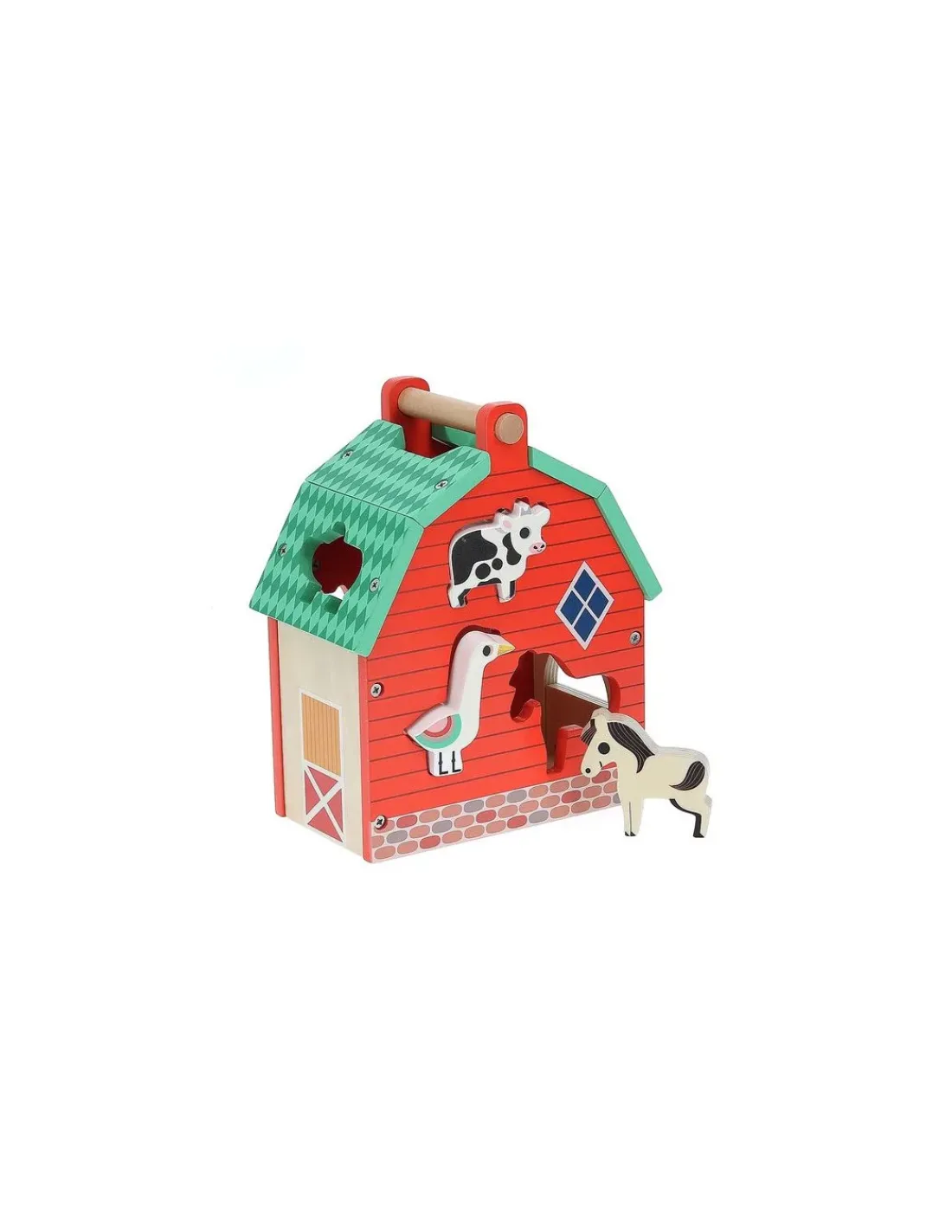 Les enfants à partir de 2 ans vont s’amuser avec ce jeu d’éveil peuplé d’animaux, qui trouvera également sa place comme déco dans leur chambre. Ils apprendront à leur rythme à manipuler les animaux pour les encastrer dans les espaces correspondants. Une fois encastrées, les pièces sont facilement récupérables grâce à la porte basculante de la maison et à la pente inclinée à l’intérieur. Les enfants prendront également plaisir à jouer avec les figurines animaux, en utilisant la boîte à formes comme un support à leur imagination.