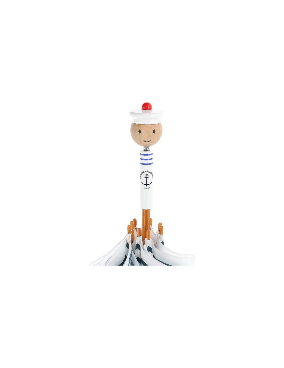 Découvrez le parapluie Ecole des mousses de Vilac, un magnifique parapluie en bois laqué pour les enfants. En collaboration avec la Marine nationale, ce parapluie Made in France protègera votre enfant de la pluie. Sa poignée en forme de marin séduira les enfants, qui aimeront se promener sous la pluie avec cet accessoire coloré.