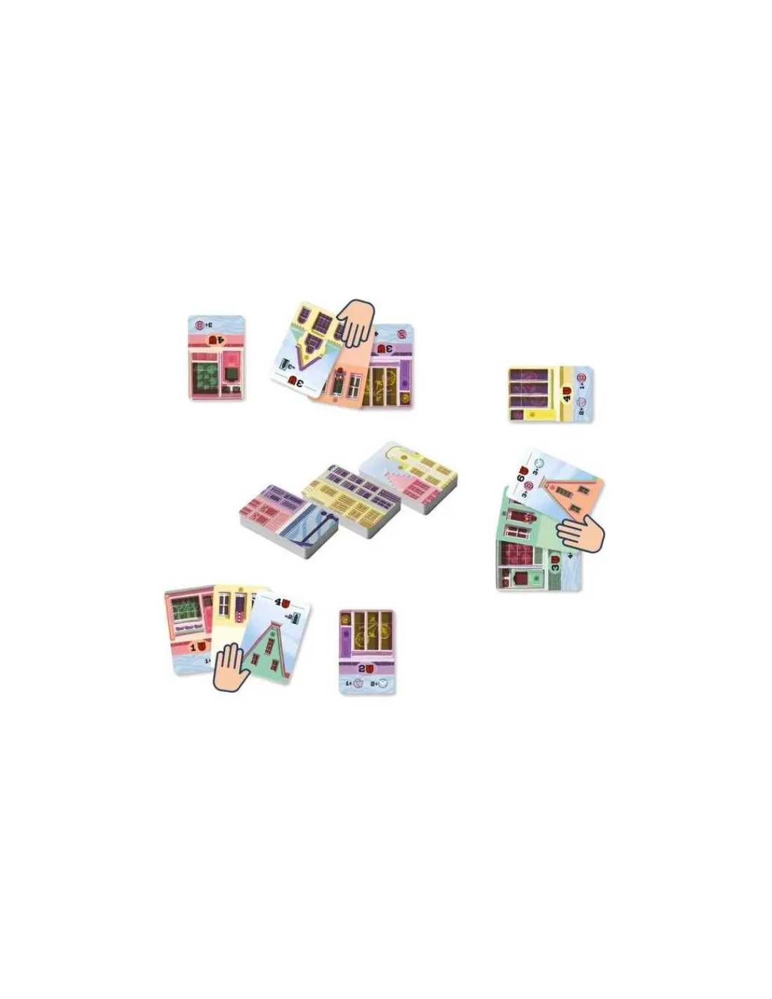 Choisissez la meilleure carte de votre main à poser avant de passer les autres à vos adversaires. Vous devrez réaliser les objectifs de vos Boutiques et de vos Toits, tout en gardant un œil sur les couleurs, afin de marquer le plus de points et de remporter la victoire!