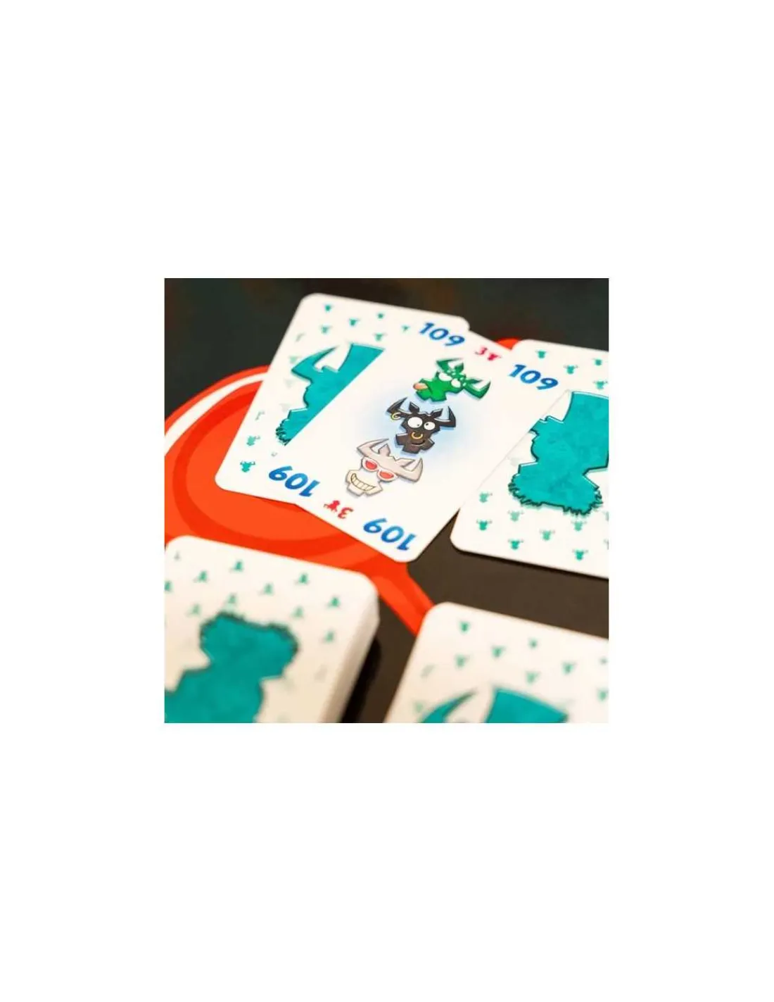 Posez vos cartes dans une des 5 rangées en respectant les couleurs des têtes de bœuf disponibles. Mais attention : si vous posez la 6e carte ou la 6e tête de bœuf de la même couleur d’une rangée, vous devez ramasser les cartes ! Vous récupérez ainsi des points négatifs.