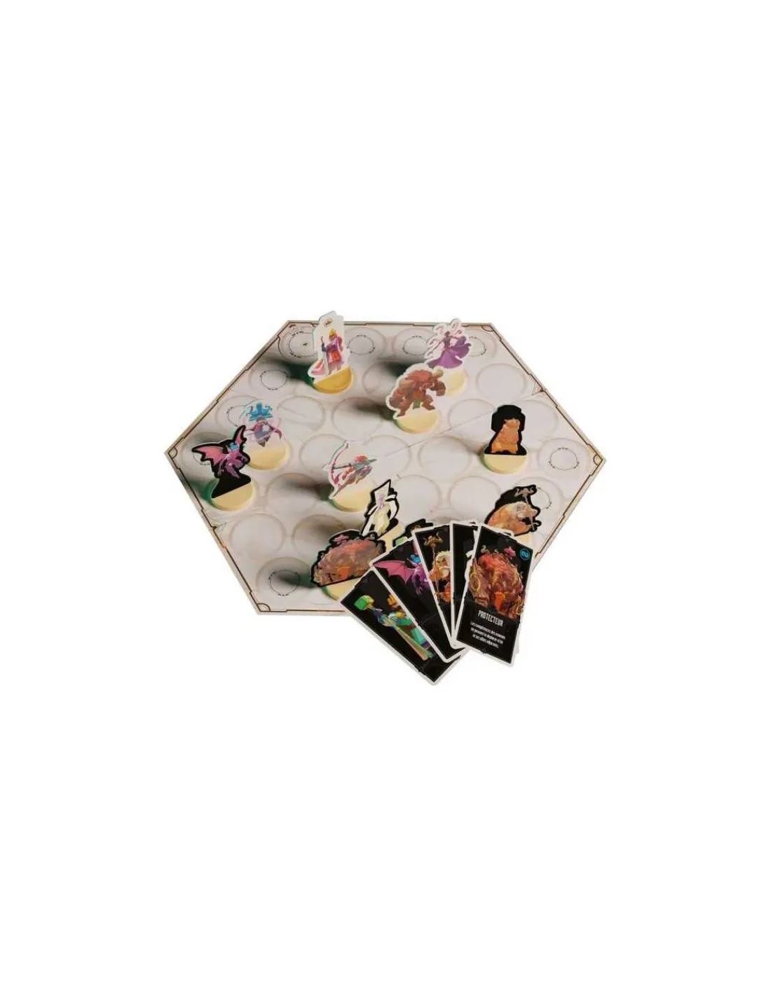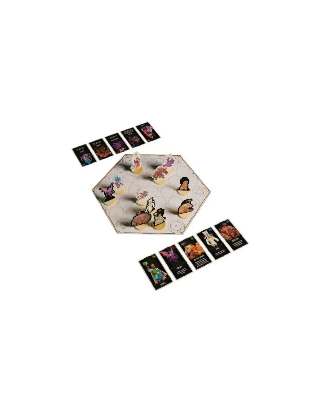 Composez une équipe de personnages uniques, afin de vaincre le Leader adverse! Pour cela, capturez-le en amenant 2 de vos personnages à côté de lui ou manœuvrez habilement pour qu’il se retrouve complètement encerclé! Le tour de jeu se compose de deux phases : la phase d’Action, puis la phase de Recrutement. Pendant la phase d’Action, le joueur actif choisit pour chaque personnage de se déplacer sur une case adjacente ou d’utiliser une compétence active. Pendant la phase de Recrutement, le joueur choisit un personnage parmi les 3 disponibles et l’ajoute à son côté du plateau (jusqu’à atteindre une équipe de 5 personnage).