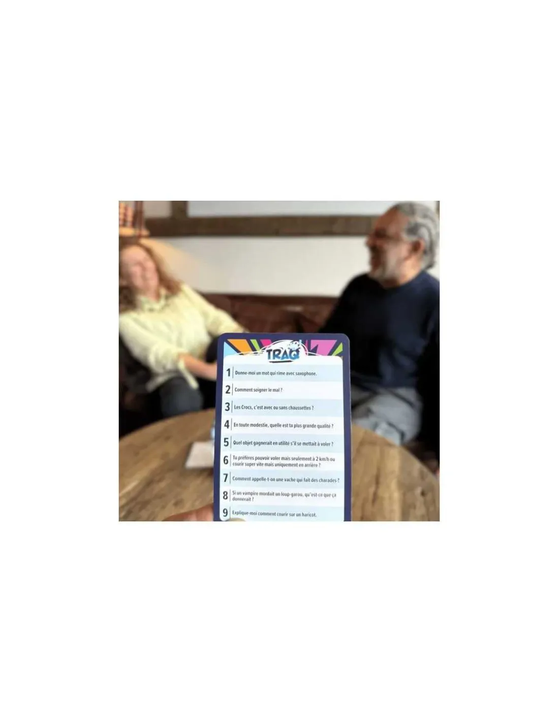 Un jeu de société aux règles simples, des parties rapides, des questions hilarantes et jouable n’importe où et n’importe quand. 1800 questions pour une rejouabilité infinie!