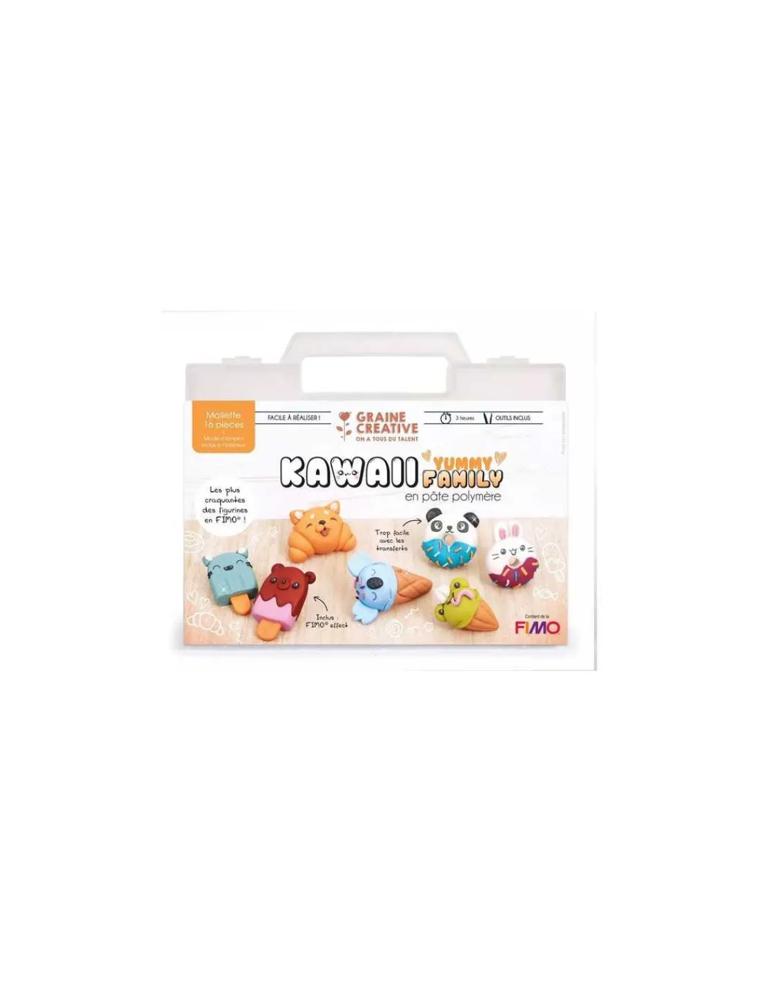 Découvrez la Mallette Kawaii Yummy family pâte FIMO de Graine créative, un coffret créatif pour réaliser soi-même des créations Kawaii en pâte fimo.