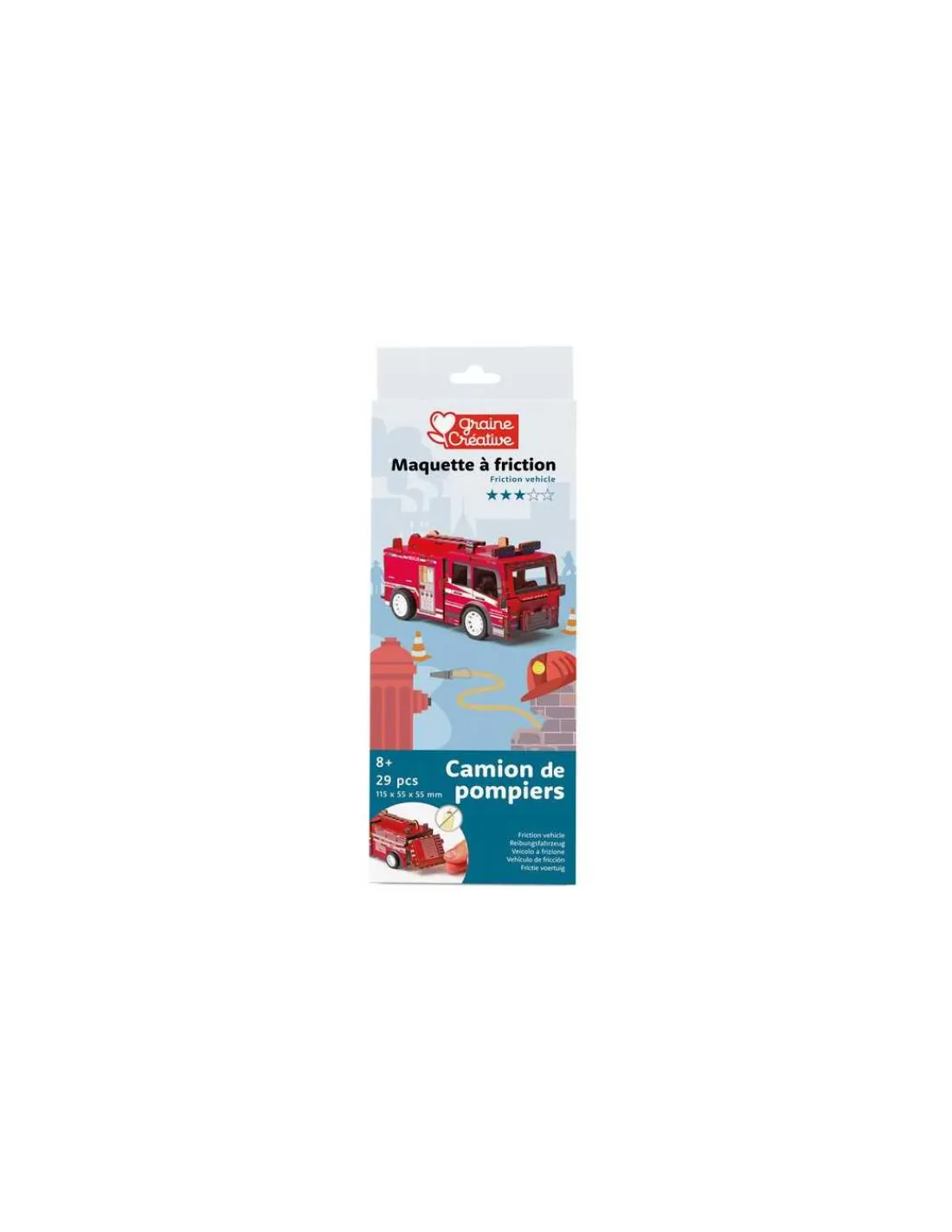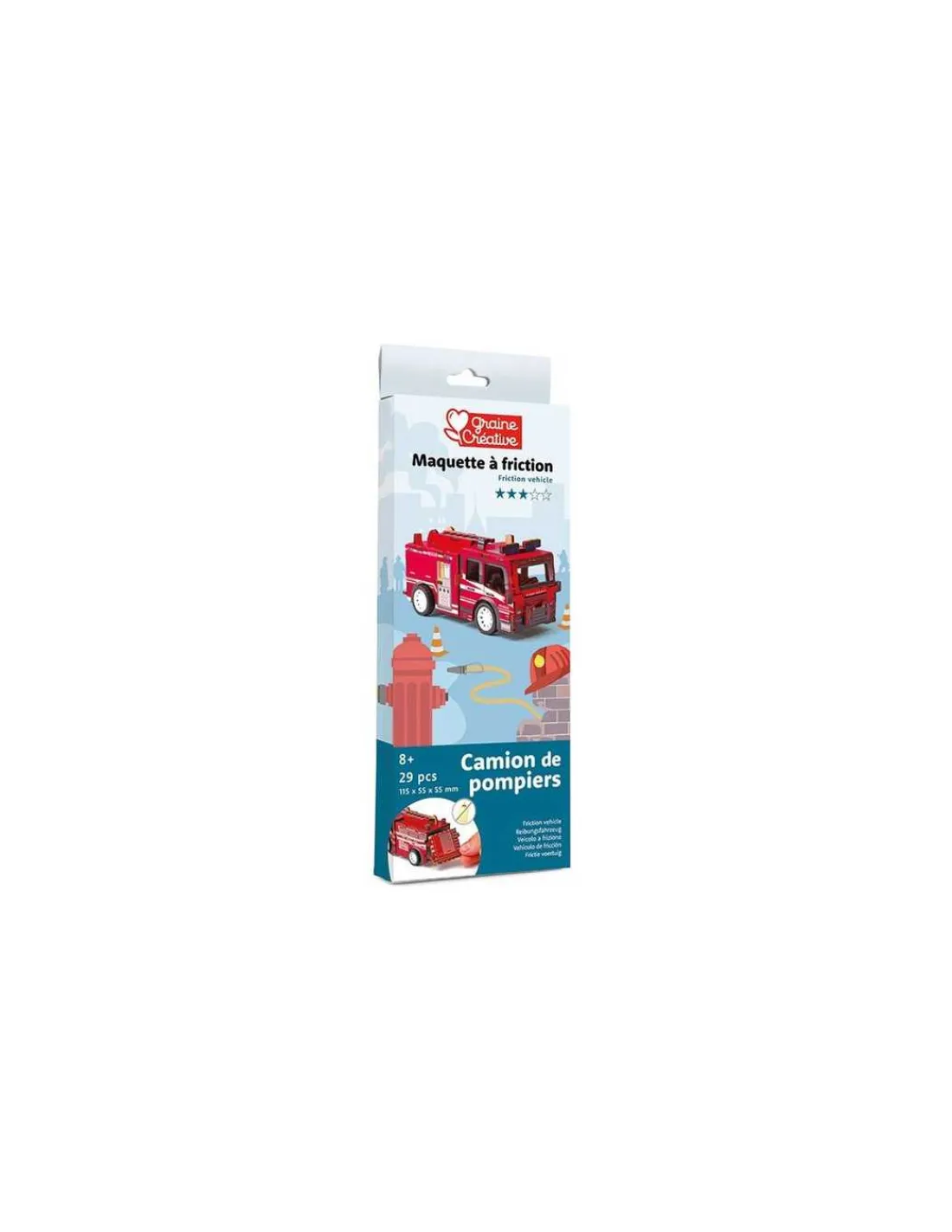 Découvrez la maquette à friction Camion de pompiers de Graine Créative, un puzzle 3D en bois de 29 pièces représentant un véhicule de pompier à assembler soi-même, dès 8 ans.