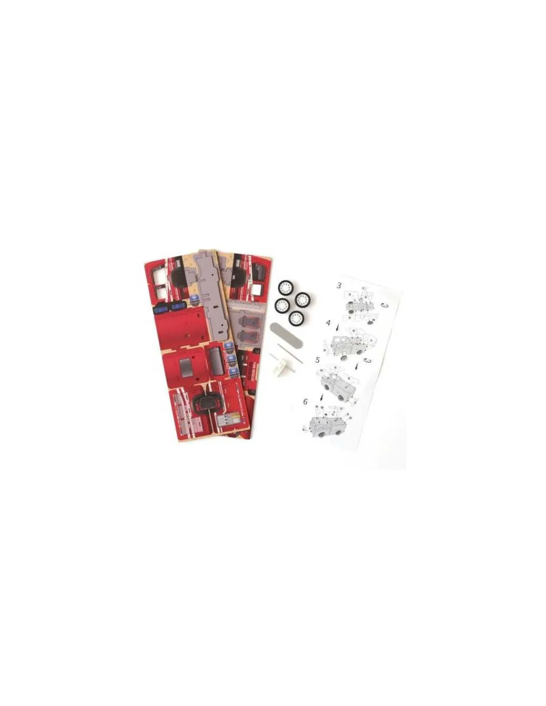 Avec ses 29 pièces prédécoupées en bois de qualité, ce véhicule est à assembler sans colle ni outil. Les pièces s’emboîtent avec précision pour donner vie à une superbe maquette miniature. Une fois montée, le camion roule tout seul grâce à son astucieux système de roues à friction.