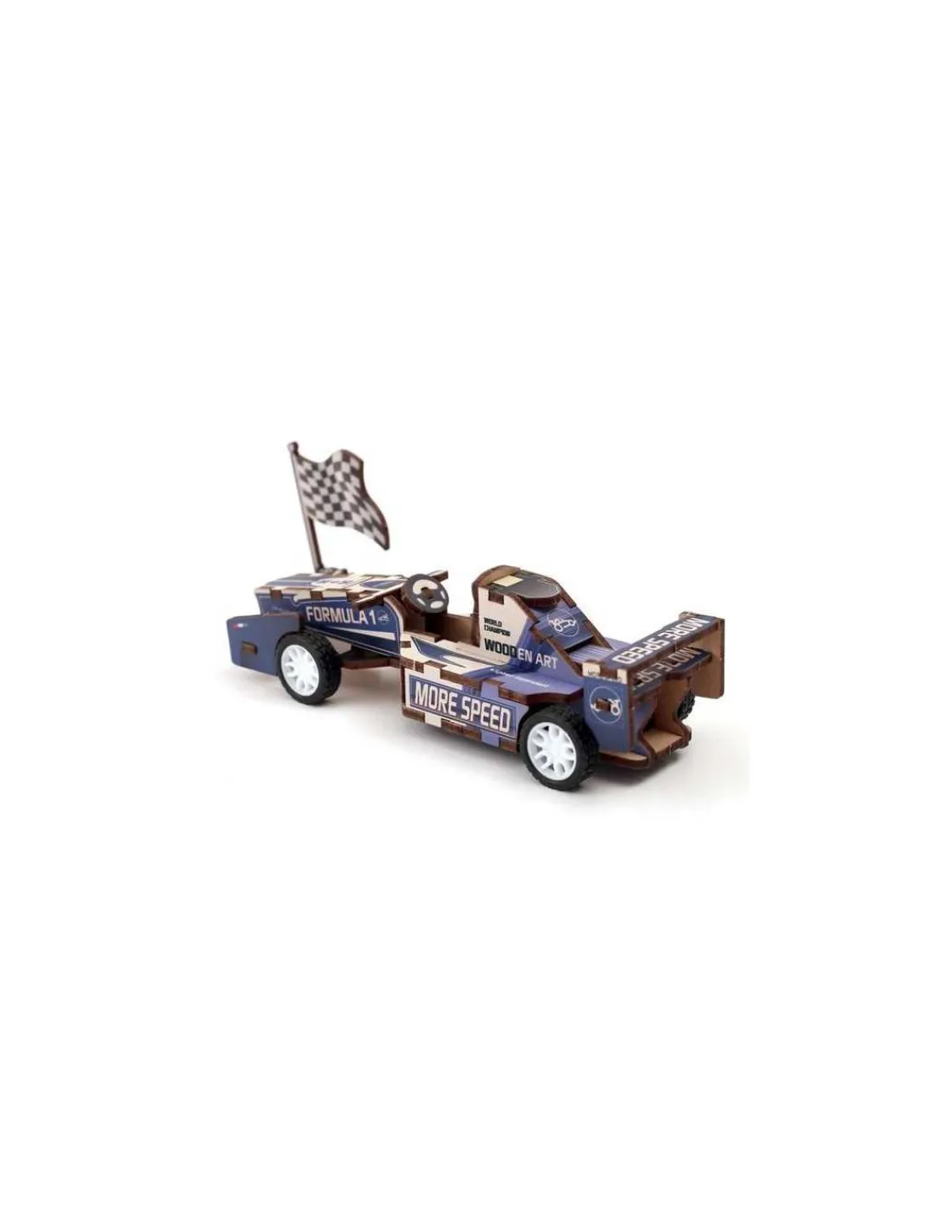 Avec ses 26 pièces prédécoupées en bois de qualité, cette voiture de course est à assembler sans colle ni outil. Les pièces s’emboîtent avec précision pour donner vie à une superbe maquette miniature. Une fois montée, la voiture roule toute seule grâce à son astucieux système de roues à friction.