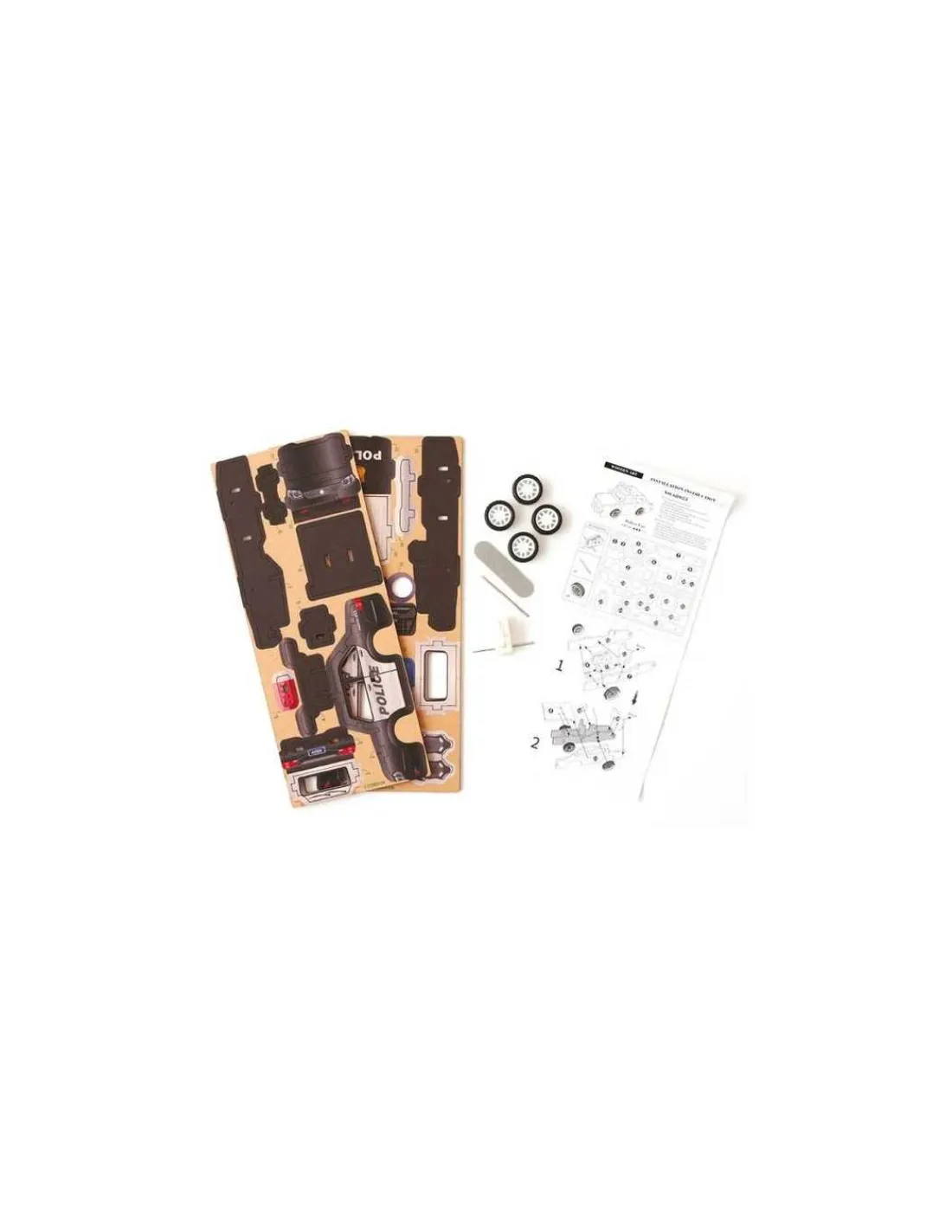 Avec ses 22 pièces prédécoupées en bois de qualité, cette voiture est à assembler sans colle ni outil. Les pièces s’emboîtent avec précision pour donner vie à une superbe maquette miniature. Une fois montée, la voiture roule toute seule grâce à son astucieux système de roues à friction.