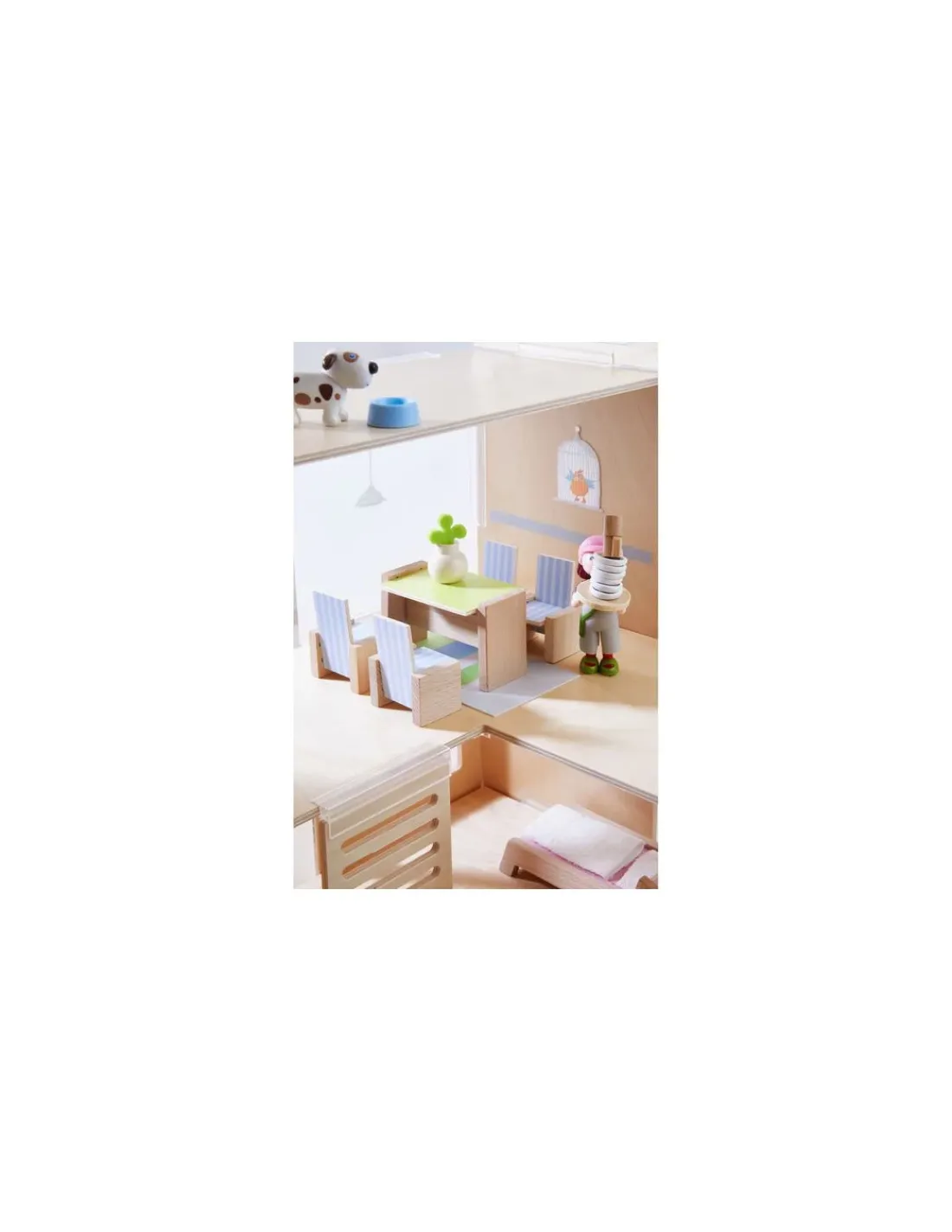 Découvrez la salle à manger pour les maisons de poupées Little Friends de Haba, un coffret de 5 meubles en bois pour compléter votre maison de poupée en créant une salle à manger convivial pour les enfants à partir de 3 ans.