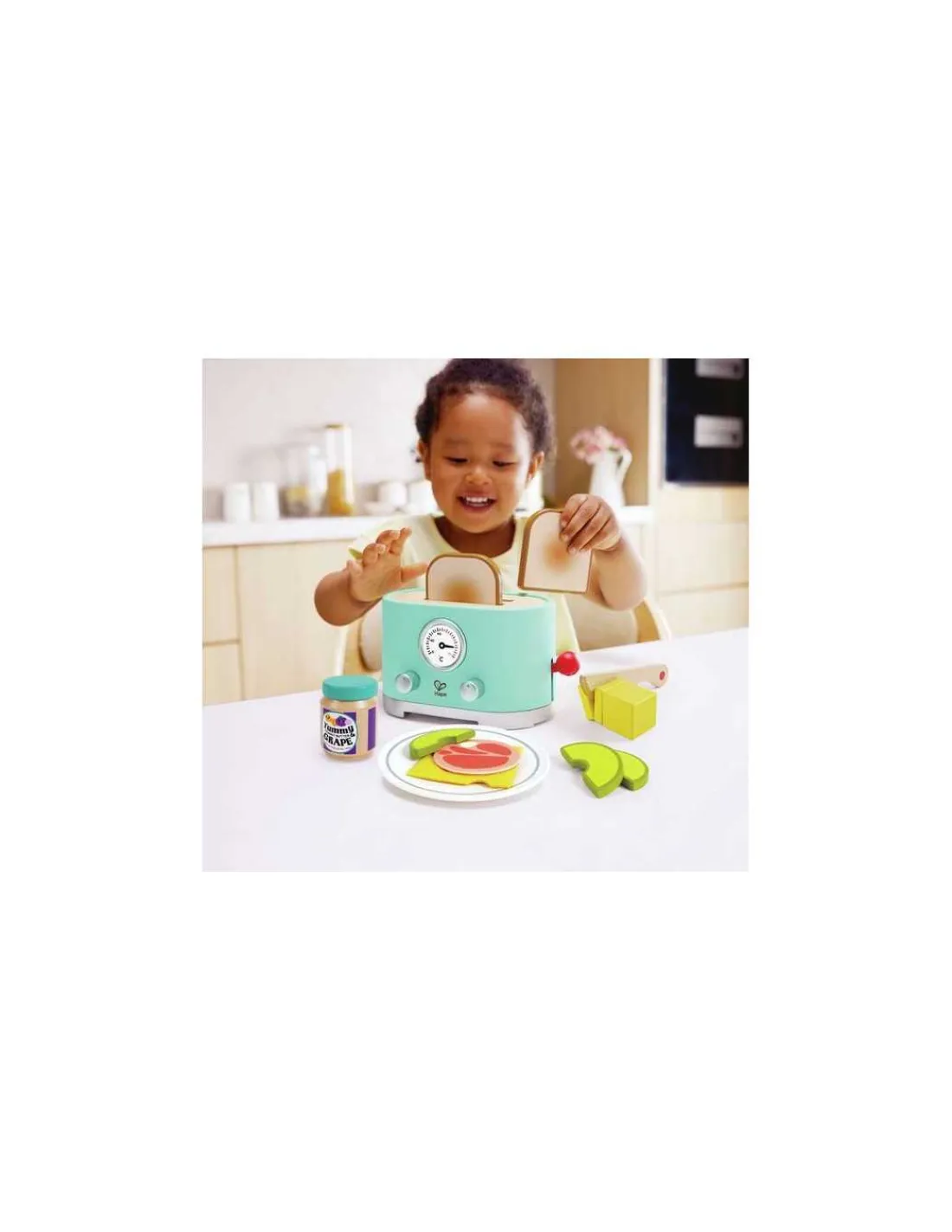 Découvrez le grille-pain interactif de Hape, un jouet en bois sur le thème du petit déjeuner pour jouer à la dinette dès 2 ans.