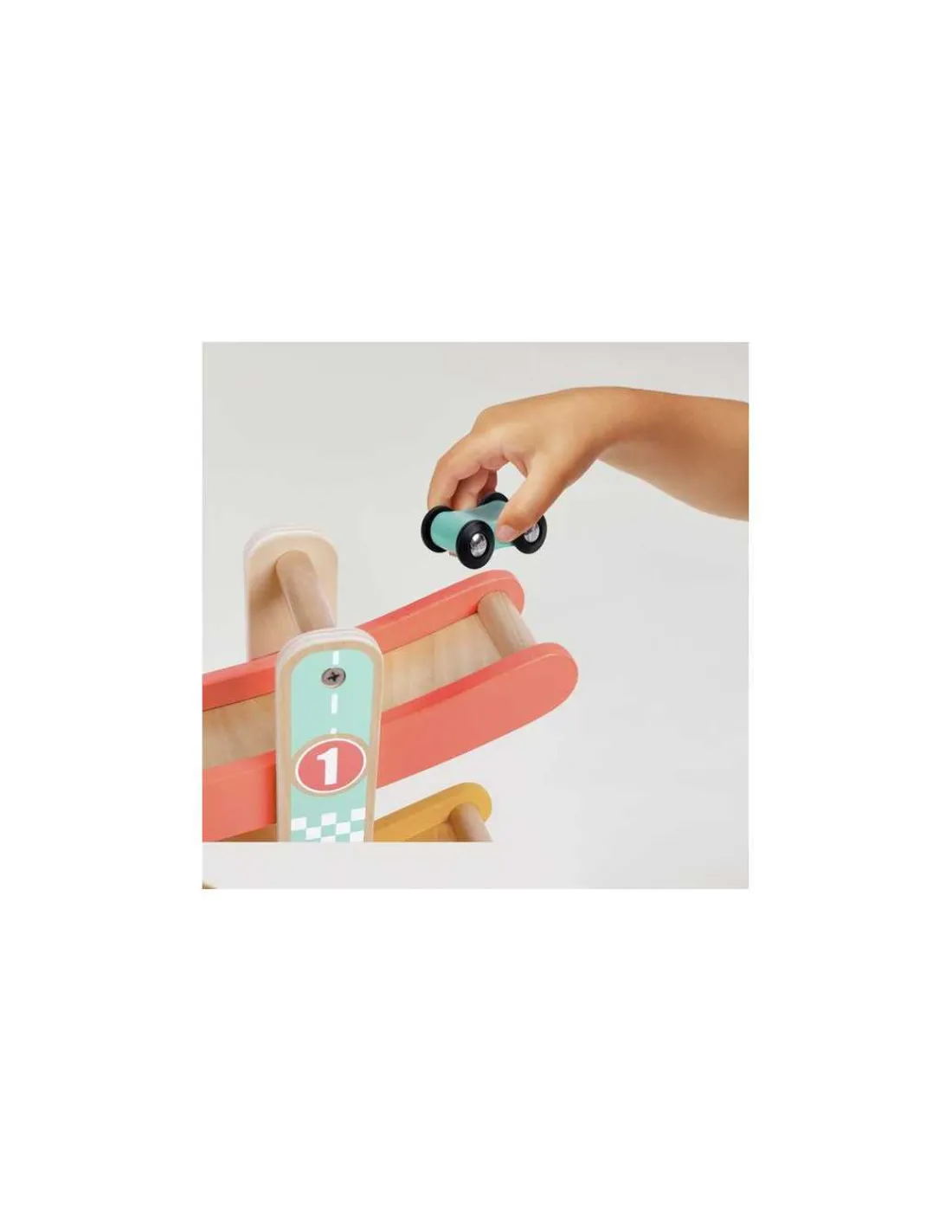 Découvrez la piste de course et voitures de Hape, un magnifique jouet d’éveil aux couleurs douces sur lequel votre enfant va s’amuser à faire rouler les 3 voitures de course. Une descente de voitures composée de 4 niveaux de piste à offrir aux enfants dès 18 mois.