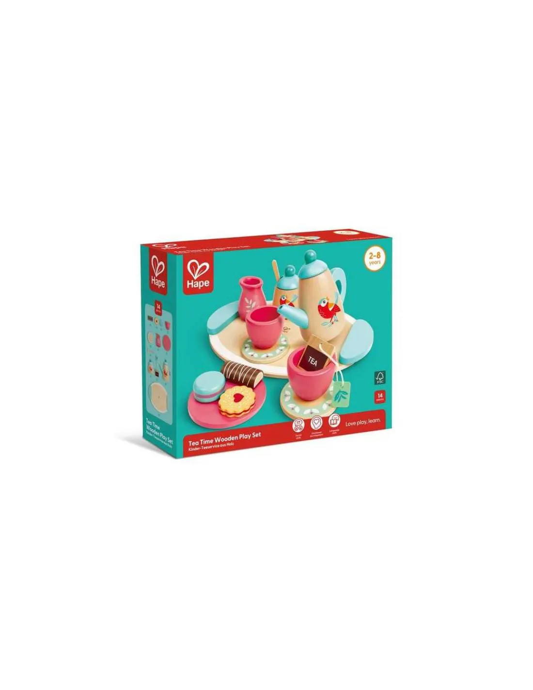 Découvrez le set de thé en bois de Hape, un jouet en bois sur le thème de la cuisine pour jouer à la dinette dès 2 ans.