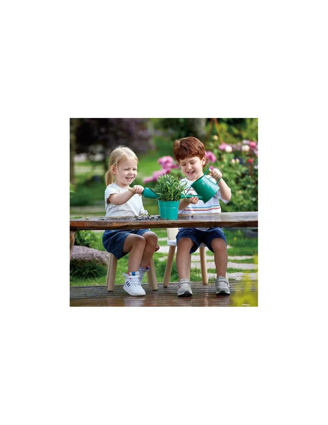 Des jouets sur le thème du jardinage qui encouragent les enfants à jouer dehors et à découvrir le monde des plantes, de la nature et du développement durable.