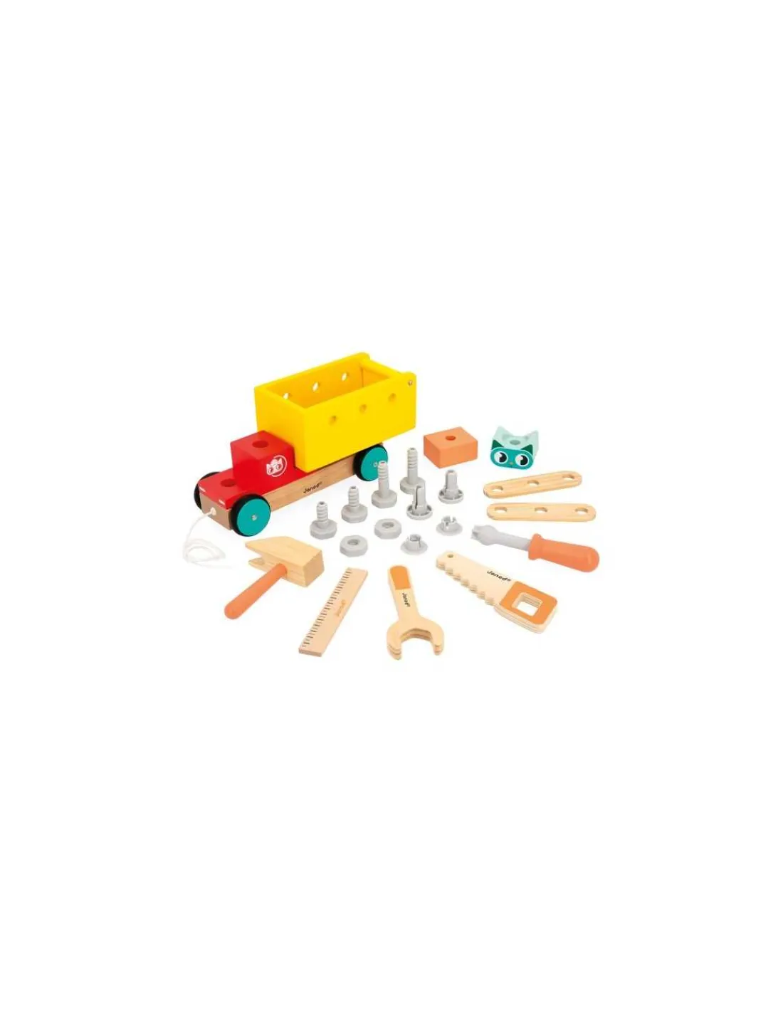 Découvrez le camion bricolage à tirer de la collection Brico’Kids de Janod, un jouet en bois sur le thème du bricolage pour les enfants dès 2 ans.