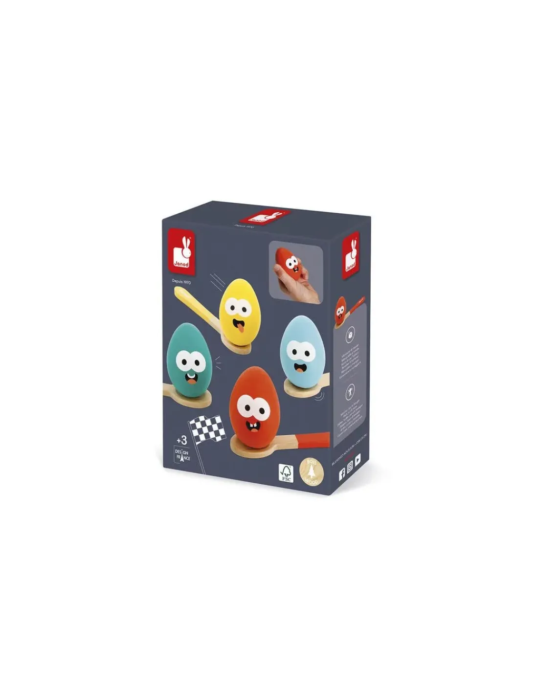 Découvrez la course aux oeufs de Janod, un jeu d’adresse amusant idéal pour animer un goûter d’anniversaire ou une fête entre copains.