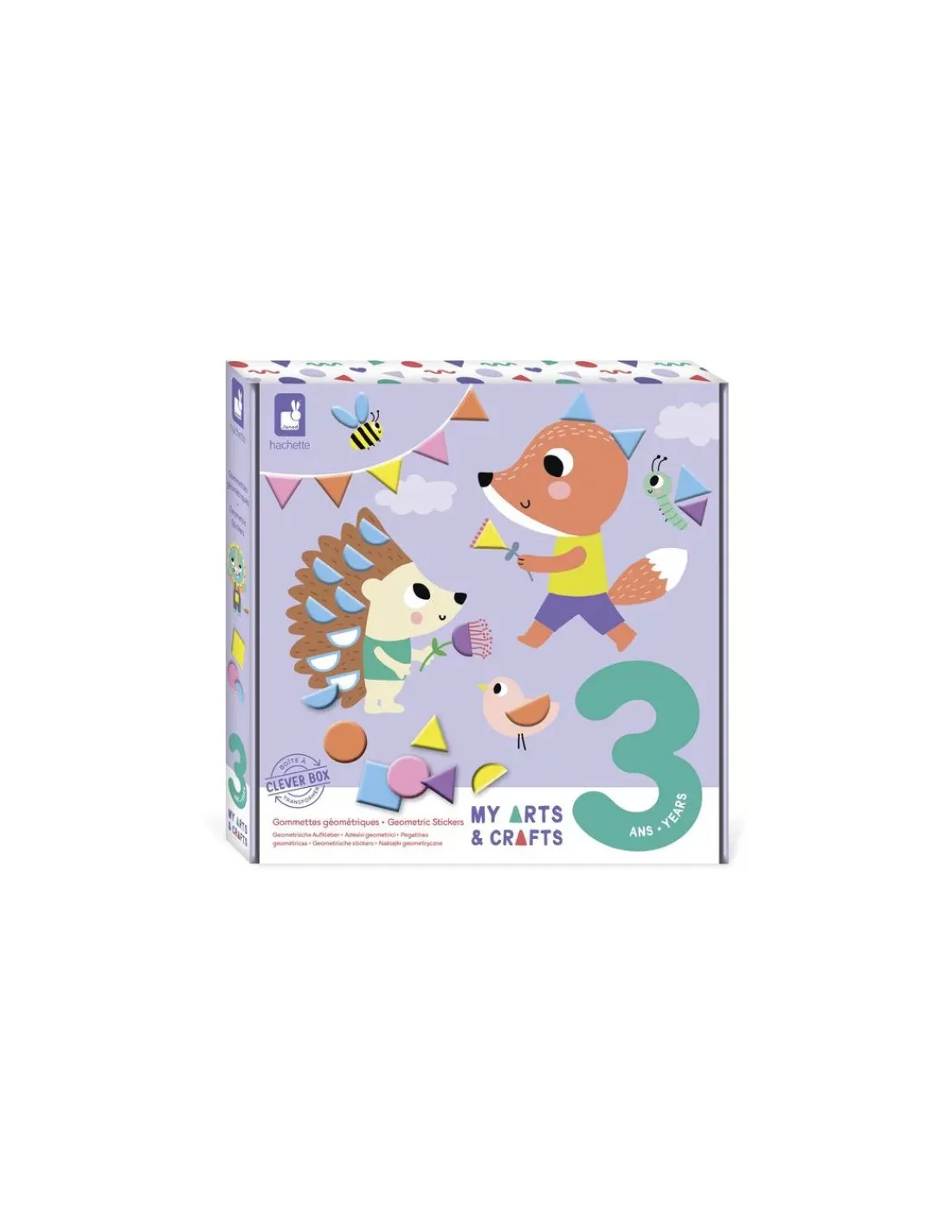 Découvrez le coffret créatif Gommettes géométriques 3 ans de la collection My Arts & Crafts de Janod, une activité créative avec des gommettes de mosaïques en mousse autocollantes pour les enfants dès 3 ans.