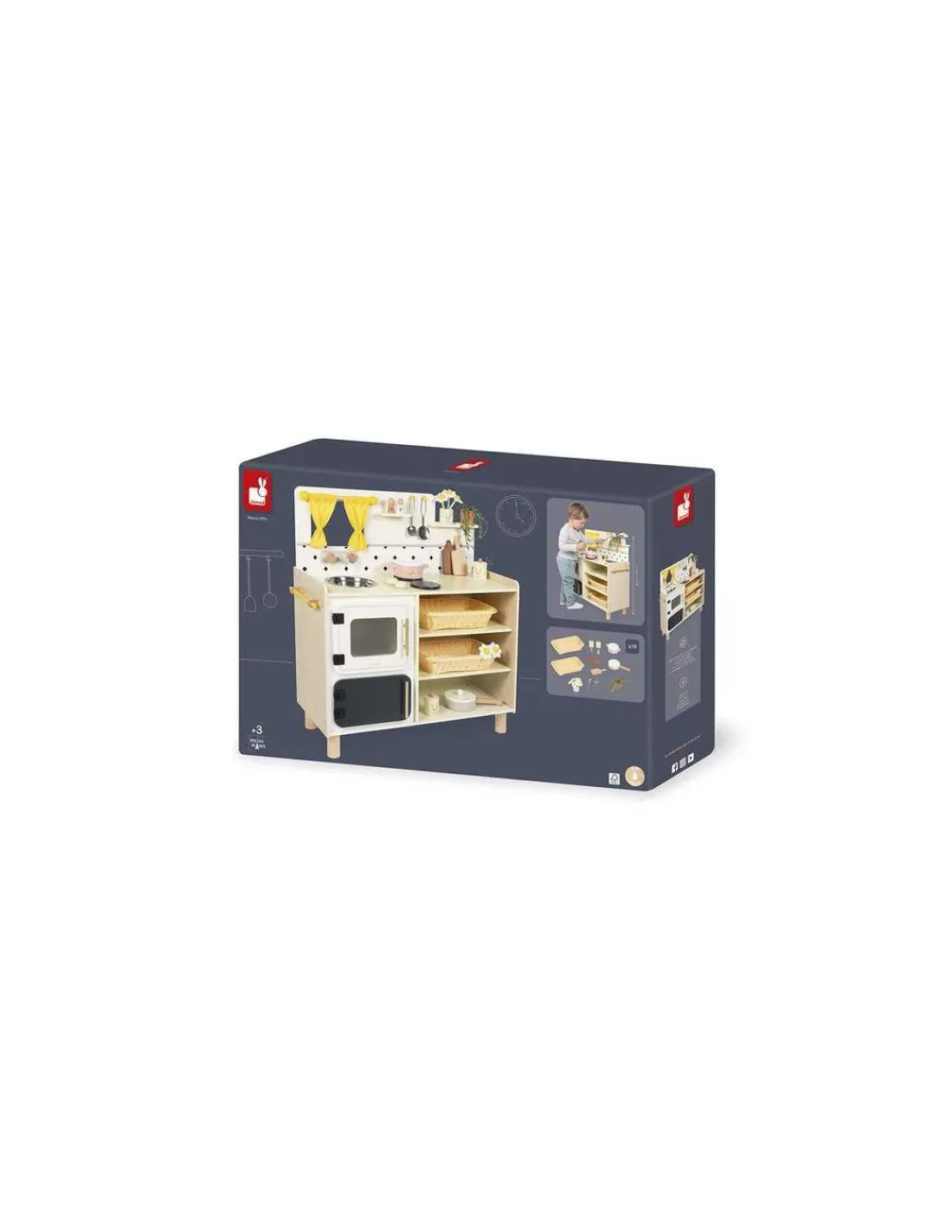 Découvrez la grande cuisine équipée de la collection Mamie Soleil de Janod, une cuisine en bois conçue pour les enfants dès 3 ans, idéale pour préparer de délicieux petits plats.